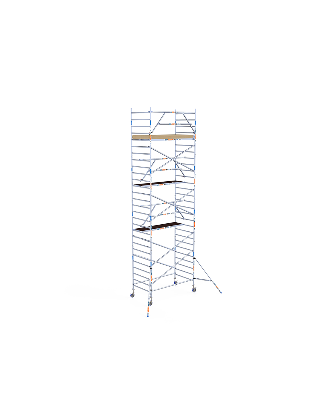 Al adquirir el andamio móvil tipo torre 135x250x920 metros altura de trabajo de la línea ECO EXTRA de ASC estás adquiriendo uno de los andamios móviles de aluminio más seguros del mercado gracias a su barandilla, que podrás montar incluso antes de acceder a la plataforma de trabajo, evitando así riesgo de accidentes. Asegura tu trabajo en altura gracias a esta torre móvil de andamio 100% homologada y que cumple con la normativa europea. Este modelo cuenta con una altura de trabajo de 9,20 metros, pero puedes ampliarlo hasta 14,20 metros gracias a su carácter ampliable.