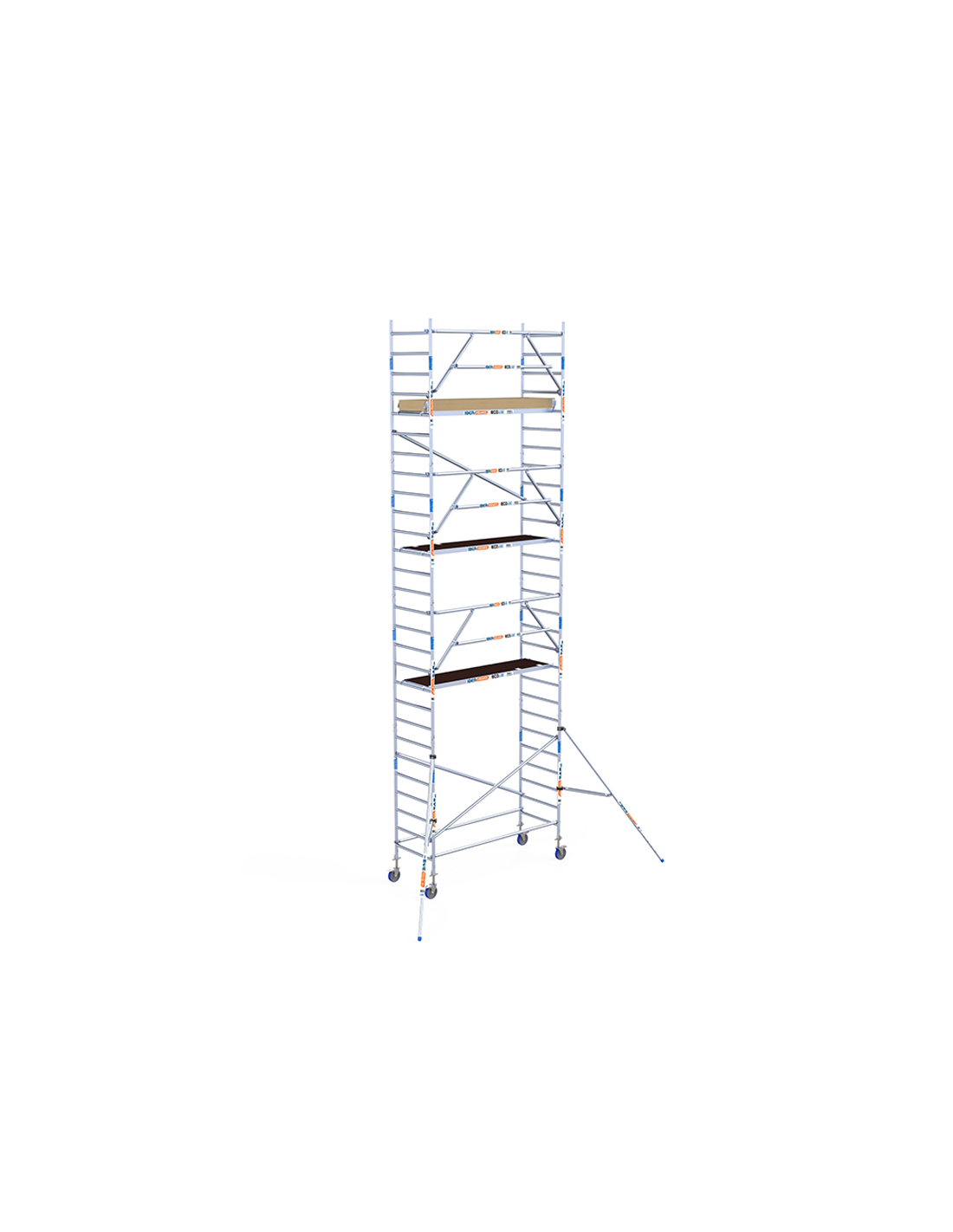 Al adquirir el andamio móvil tipo torre 90x250x920 metros altura de trabajo de la línea ECO EXTRA de ASC estás adquiriendo uno de los andamios móviles de aluminio más seguros del mercado gracias a su barandilla, que podrás montar incluso antes de acceder a la plataforma de trabajo, evitando así riesgo de accidentes. Asegura tu trabajo en altura gracias a esta torre móvil de andamio 100% homologada y que cumple con la normativa europea. Este modelo cuenta con una altura de trabajo de 9,20 metros, pero puedes ampliarlo hasta 10,20 metros gracias a su carácter ampliable.