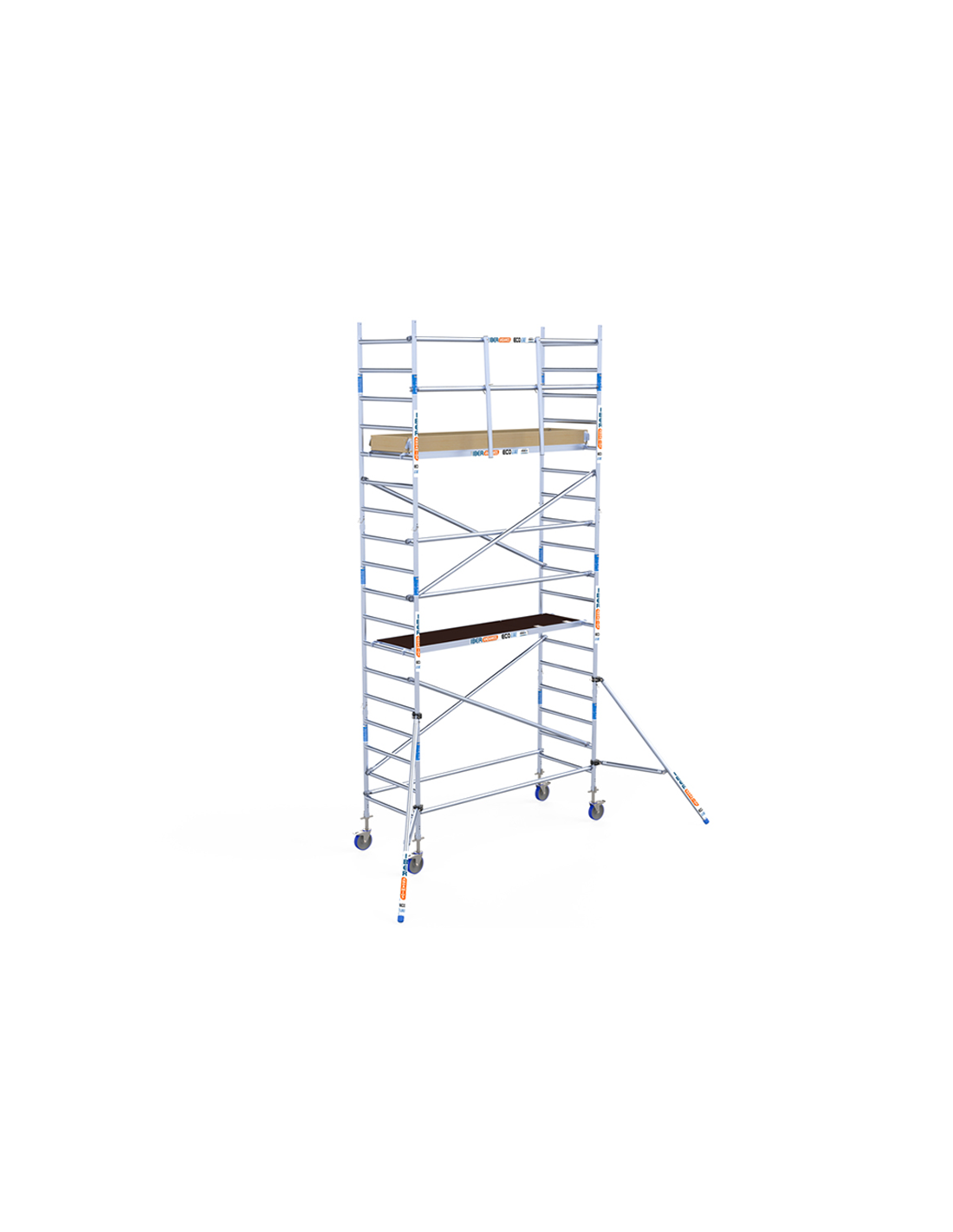 Al adquirir el andamio móvil tipo torre 90x250x620 metros altura de trabajo de la línea ECO LINE de ASC estás adquiriendo uno de los andamios móviles de aluminio más seguros del mercado gracias a su barandilla, que podrás montar incluso antes de acceder a la plataforma de trabajo, evitando así riesgo de accidentes. Asegura tu trabajo en altura gracias a esta torre móvil de andamio 100% homologada y que cumple con la normativa europea. Este modelo cuenta con una altura de trabajo de 6,20 metros, pero puedes ampliarlo hasta 10,20 metros gracias a su carácter ampliable.
