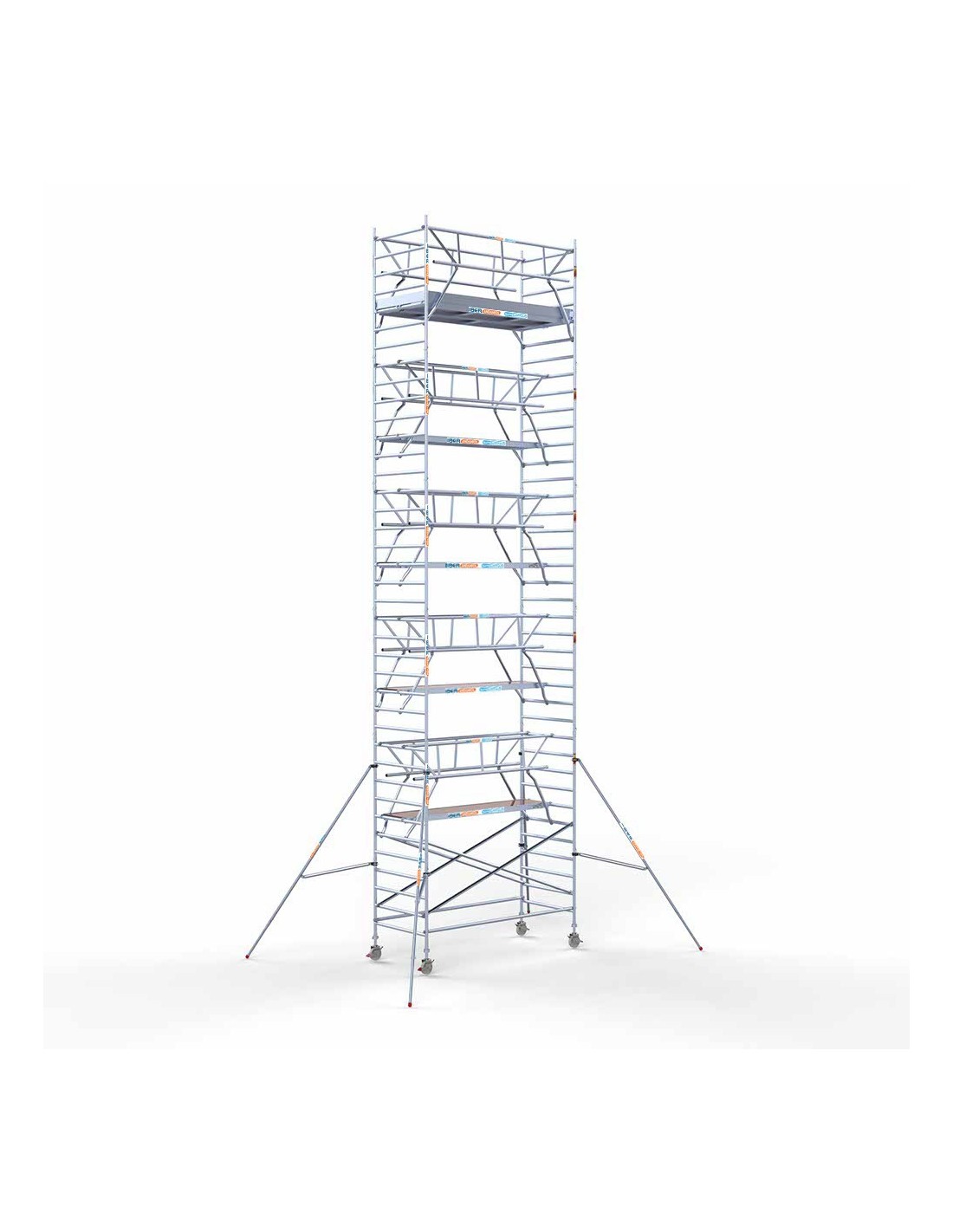 Al adquirir el andamio móvil tipo torre 135x305x1220 metros altura de trabajo de la línea PRO DOBLE SAFE estás adquiriendo uno de los andamios móviles de aluminio más seguros del mercado gracias a su barandilla SAFE INSTALL, que podrás montar incluso antes de acceder a la plataforma de trabajo, evitando así riesgo de accidentes. Asegura tu trabajo en altura gracias a esta torre móvil de andamio 100% homologada y que cumple con la normativa europea.