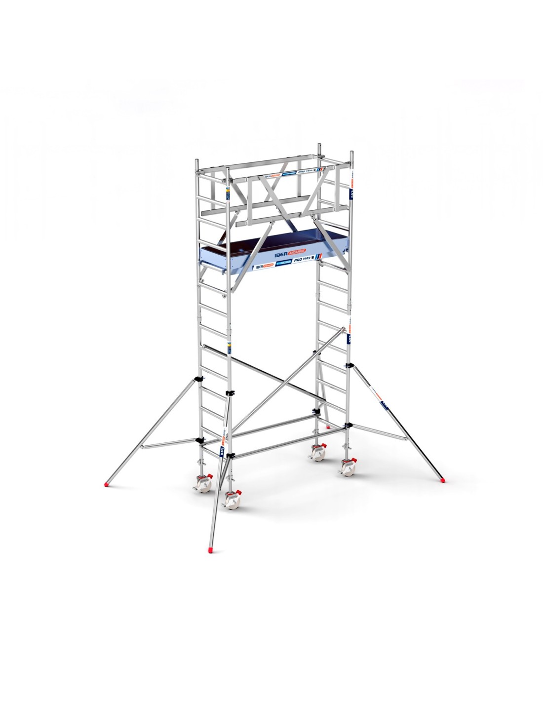 Al adquirir el andamio móvil tipo torre 75x190x520 metros altura de trabajo de la línea PRO DOBLE SAFE estás adquiriendo uno de los andamios móviles de aluminio más seguros del mercado gracias a su barandilla SAFE INSTALL, que podrás montar incluso antes de acceder a la plataforma de trabajo, evitando así riesgo de accidentes. Asegura tu trabajo en altura gracias a esta torre móvil de andamio 100% homologada y que cumple con la normativa europea. Este modelo cuenta con una altura de trabajo de 5,20 metros, pero puedes ampliarlo hasta 10,20 metros gracias a su carácter ampliable.