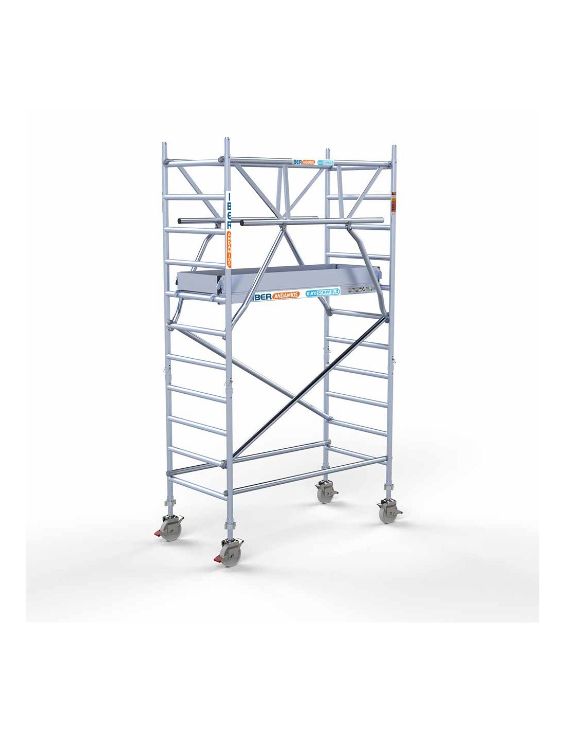 Al adquirir el andamio móvil tipo torre 90x190x420 metros altura de trabajo de la línea PRO DOBLE SAFE estás adquiriendo uno de los andamios móviles de aluminio más seguros del mercado gracias a su barandilla SAFE INSTALL, que podrás montar incluso antes de acceder a la plataforma de trabajo, evitando así riesgo de accidentes. Asegura tu trabajo en altura gracias a esta torre móvil de andamio 100% homologada y que cumple con la normativa europea. Este modelo cuenta con una altura de trabajo de 4,20 metros, pero puedes ampliarlo hasta 10,20 metros gracias a su carácter ampliable.