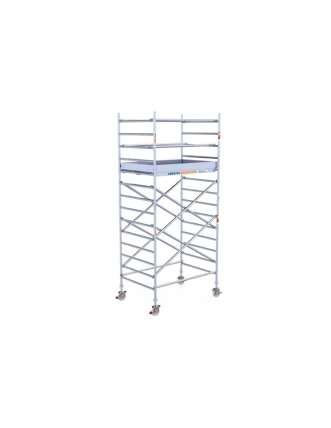 Al adquirir el andamio móvil tipo torre 135x305x520 metros altura de trabajo de la línea PRO estás adquiriendo uno de los andamios móviles de aluminio más demandados del mercado gracias a su componentes y características, que dotan a esta torre móvil de mucha más calidad y seguridad que otros modelos. Este modelo cuenta con una altura de trabajo de 5,20 metros, pero puedes ampliar su altura. Cuenta con plataforma antideslizante e hidrófuga para más seguridad.