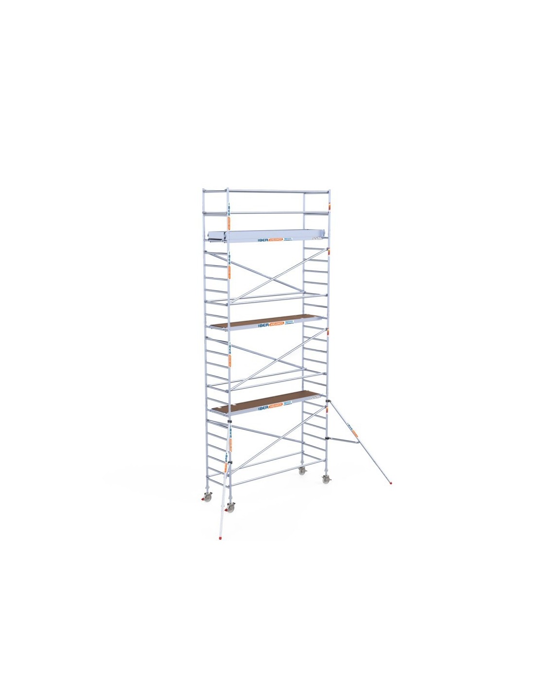 Al adquirir el andamio móvil tipo torre 90x305x820 metros altura de trabajo de la línea PRO estás adquiriendo uno de los andamios móviles de aluminio más demandados del mercado gracias a su componentes y características, que dotan a esta torre móvil de mucha más calidad y seguridad que otros modelos. Este modelo cuenta con una altura de trabajo de 8,20 metros, pero puedes ampliar su altura. Cuenta con plataforma antideslizante e hidrófuga para más seguridad.