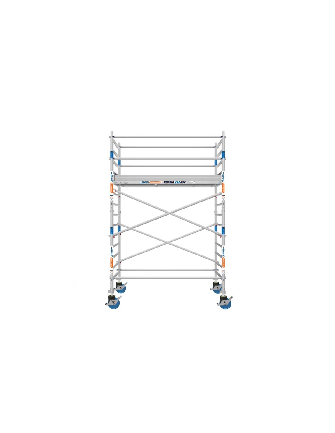 Al adquirir el andamio móvil tipo torre 150x305x520 metros altura de trabajo de la línea XTREM de Alumexx estás adquiriendo uno de los andamios móviles de aluminio más seguros del mercado. Este andamio móvil cuenta con una gran estabilidad gracias a su amplia plataforma, de 150 cm de ancho, que le permitirá realizar cualquier proyecto en altura con gran seguridad. Este modelo es de 5,20 metros altura de trabajo, pero puedes ampliarlo gracias a su carácter modular.
