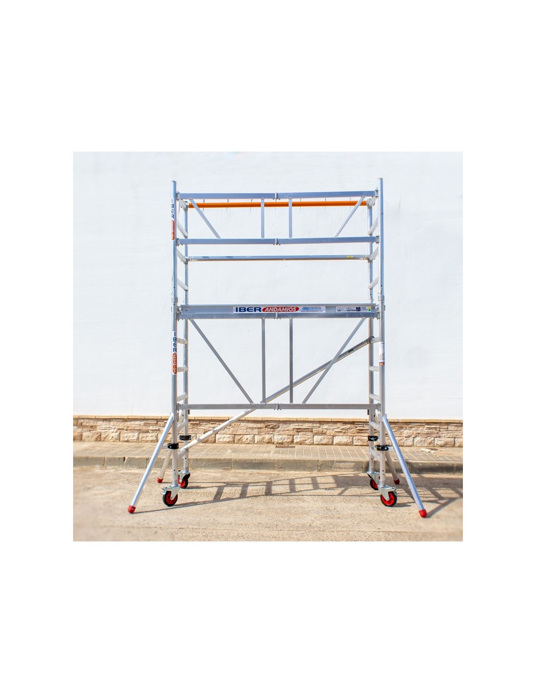 Andamio de aluminio plegable 75x190 y 3,85 metros altura de trabajo y estabilizadores MINISTAB de gran calidad y polivalencia, ya que puede usarse en todo tipo de obras. Fácil de manejar y montar, puede incluso desplazarlo sin necesidad de desmontarlo.
