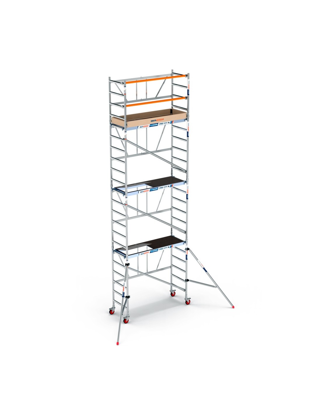 Andamio plegable de aluminio 75x190 - 7,50 m Altura de trabajo con estabilizadores y rodapiés