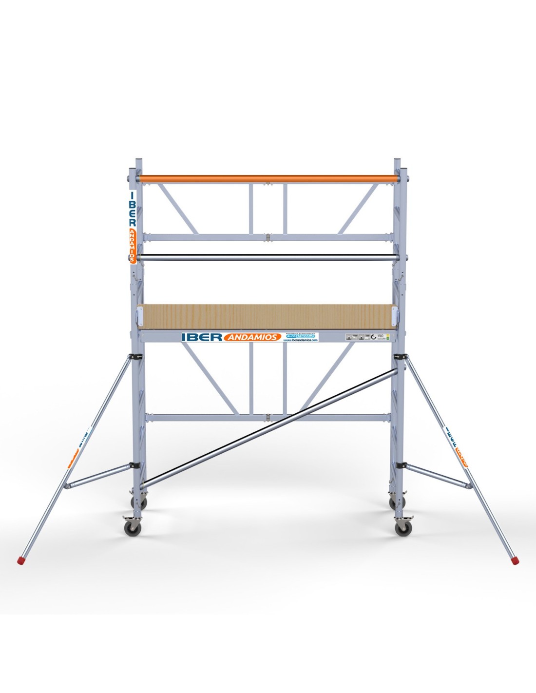 Andamio de aluminio plegable 90x190 y 3,85 metros altura de trabajo con rodapiés, estabilizadores y plataforma complementaria de 30 cm, de gran calidad y polivalencia, ya que puede usarse en todo tipo de obras. Fácil de manejar y montar, puede incluso desplazarlo sin necesidad de desmontarlo. Gracias a su plataforma complementaria de 30 cm, puedes combinar la composición de tu andamio plegable en distintas posiciones, ya sea para aumentar el ancho de la plataforma de trabajo o para utilizarla como lugar para colocar herramientas u otros objetos.