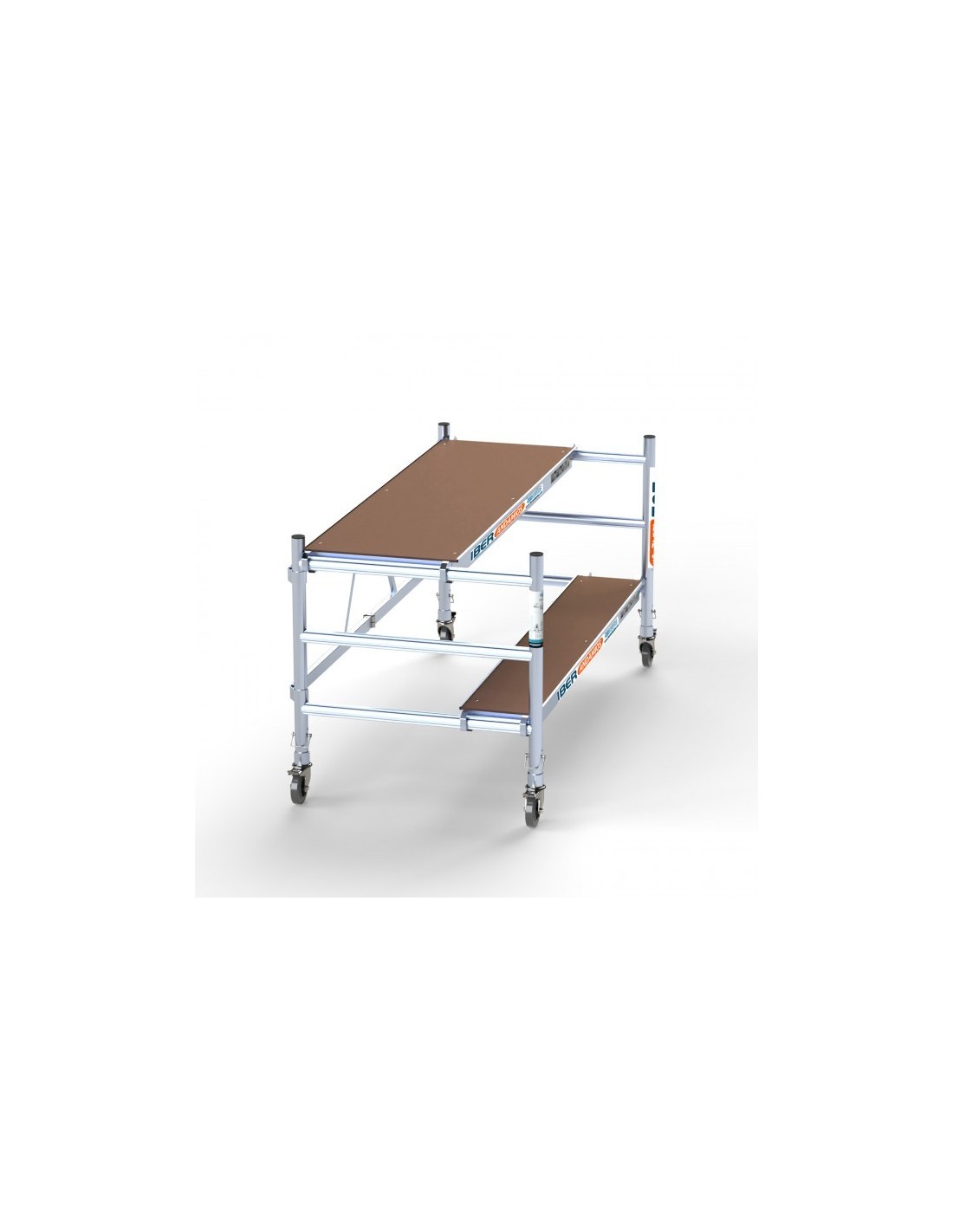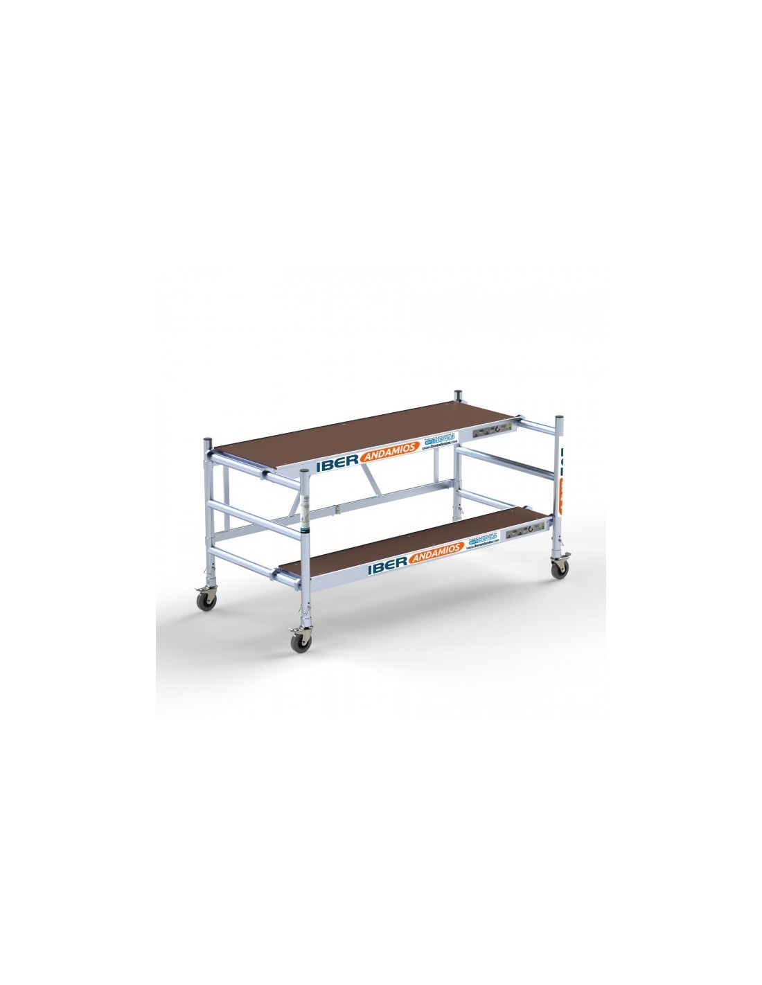 Andamio plegable de aluminio READY 90x190 de 3 metros de altura de trabajo. El modelo perfecto para tanto para profesionales de la construcción o del mantenimiento, como para particulares aficionados al bricolaje. Viene con dos plataformas de trabajo, una de 190x60 cm y la otra de 190x30 cm, que puedes combinar a tu gusto y según las necesidades de tu trabajo (consulte las fotografías). Modelo no ampliable.