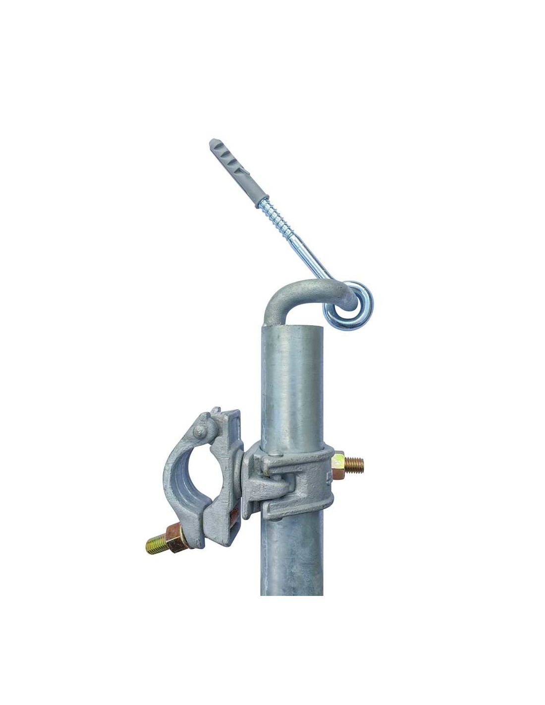 Conjunto de anclaje a pared de 80 cm para andamios y andamios móviles tipo torre. Este tipo de anclaje es obligatorio en andamios móviles de 75 cm de ancho con una altura de plataforma de 8 m. En cuanto a torres móviles de 135 cm es obligatorio a partir de 11 m de altura de plataforma. En ambas ocasiones debe utilizarse cada 4 m de altura a partir de la altura obligatoria.