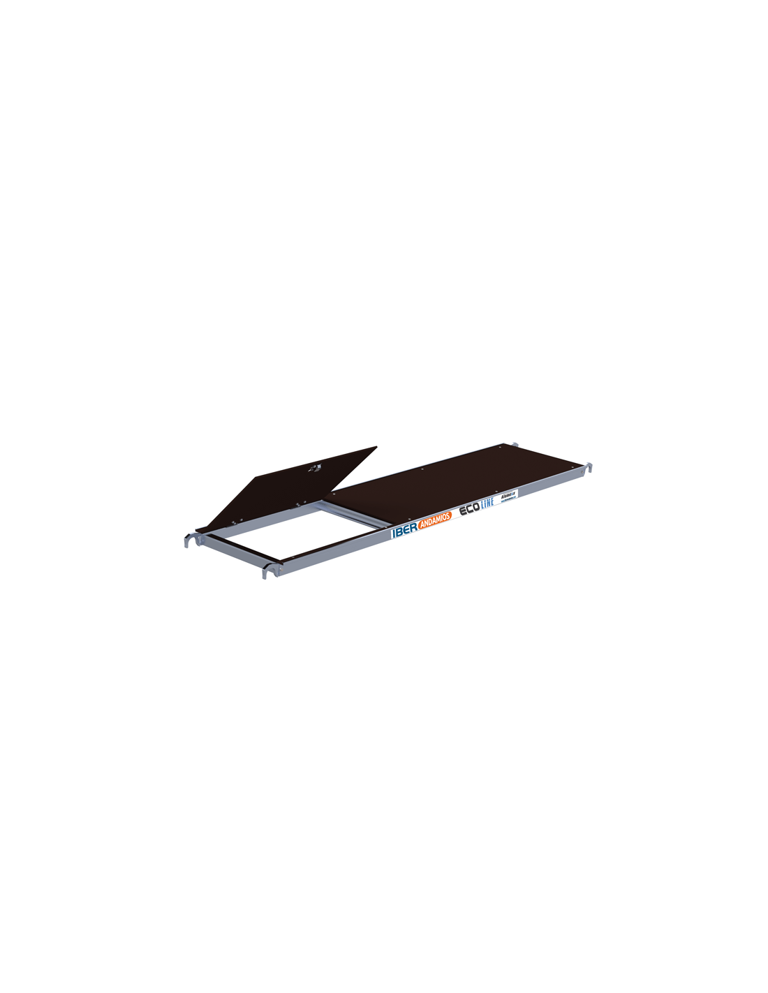 Plataforma CON trampilla de 250 cm de longitud ECO LINE, válida tanto para andamios móviles tipo torre como para andamios plegables. Su ancho es de 60 cm y está fabricada en un aluminio de gran calidad y soldadura.