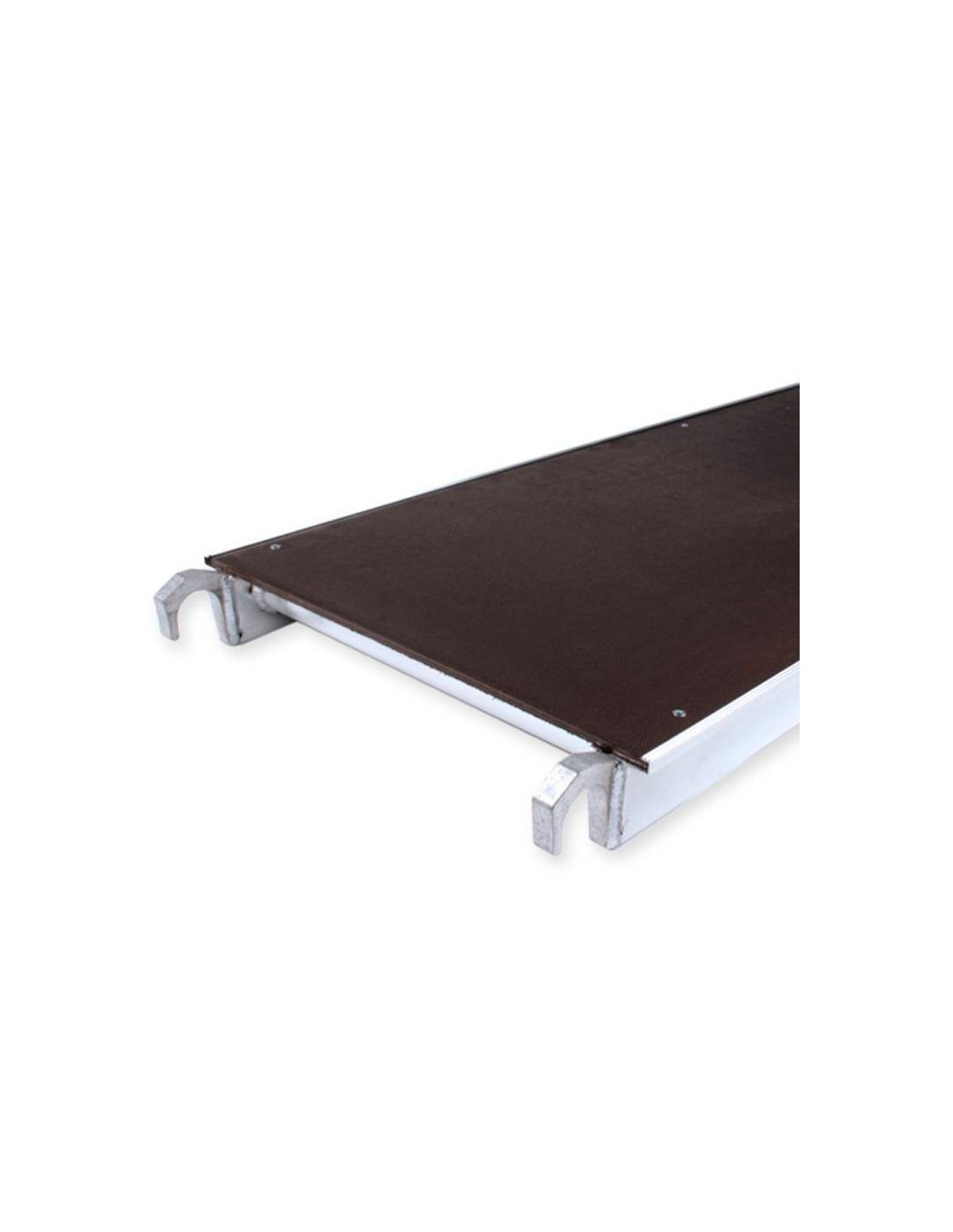 Plataforma SIN trampilla de 150 cm de longitud, válida exclusivamente para andamios plegables compactos. Su ancho es de 60 cm y está fabricada en un aluminio de gran calidad y soldadura. Carga máxima de 200kg/m2.