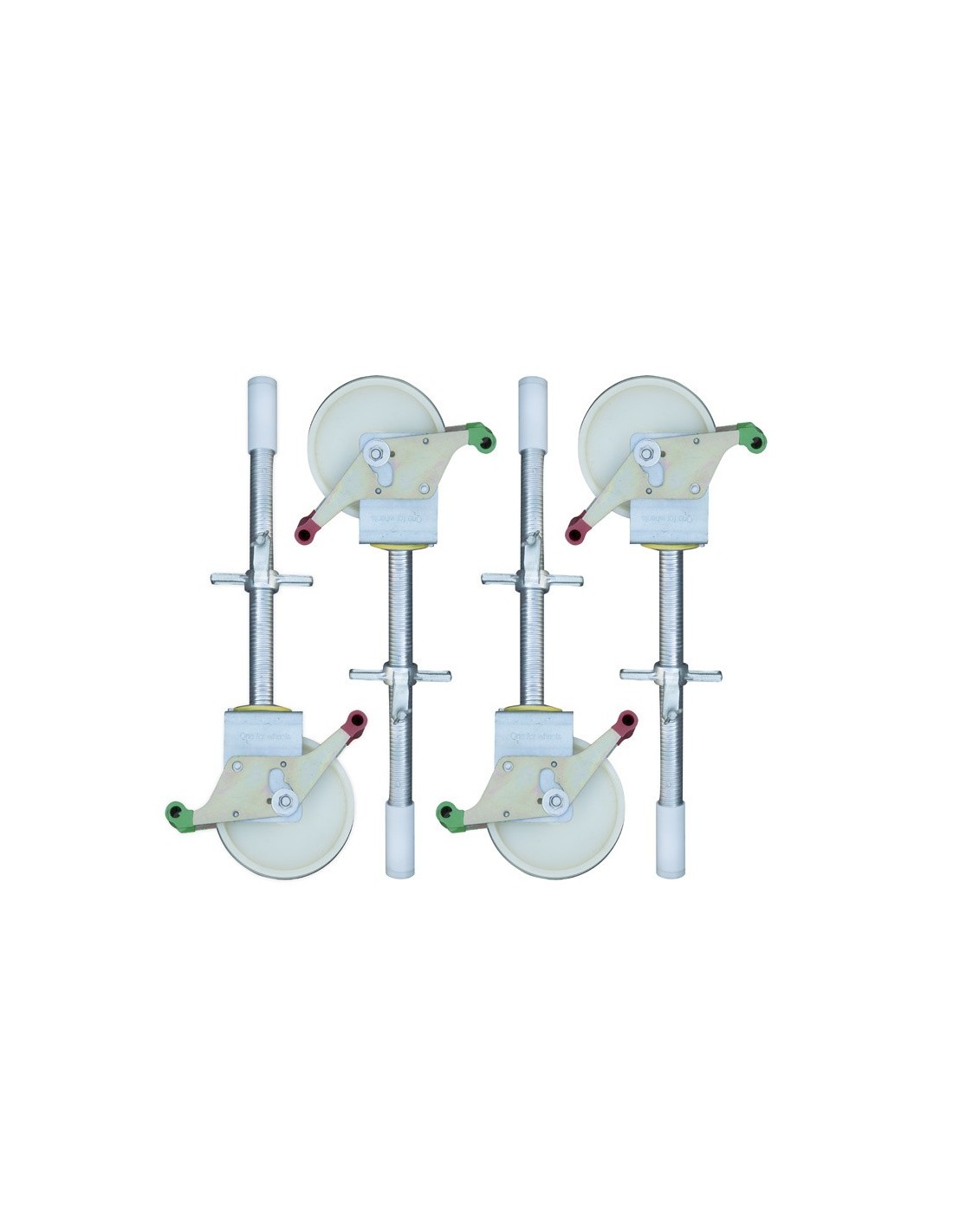 Pack 4 ruedas de nylon y husillo de acero para andamio (200 mm de diámetro)