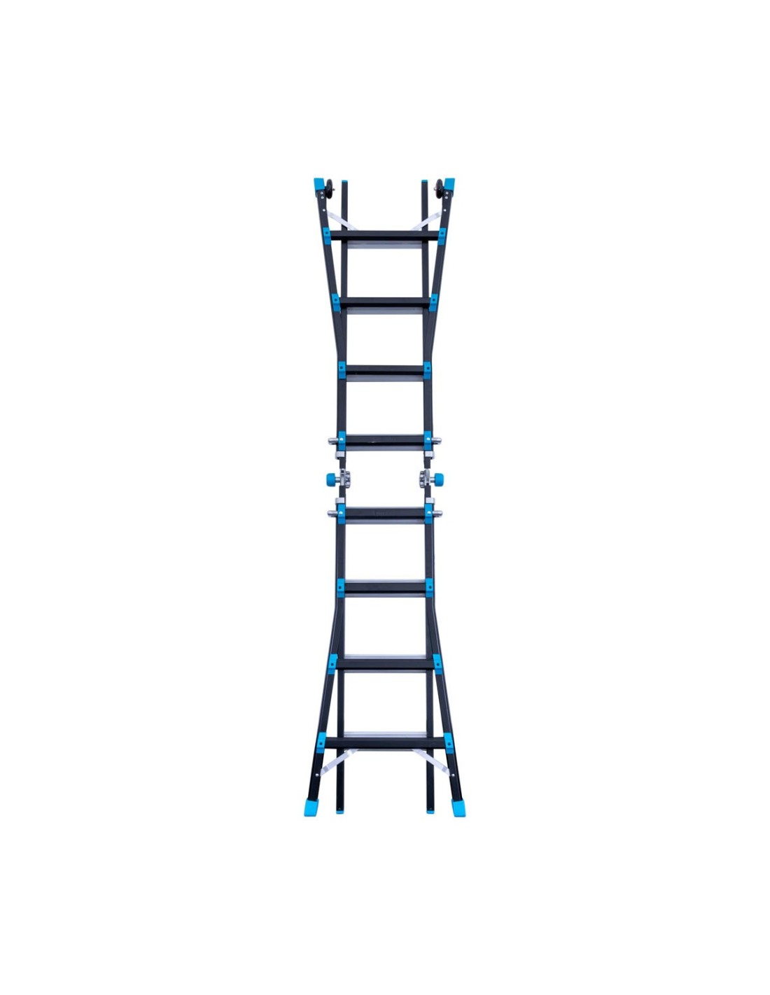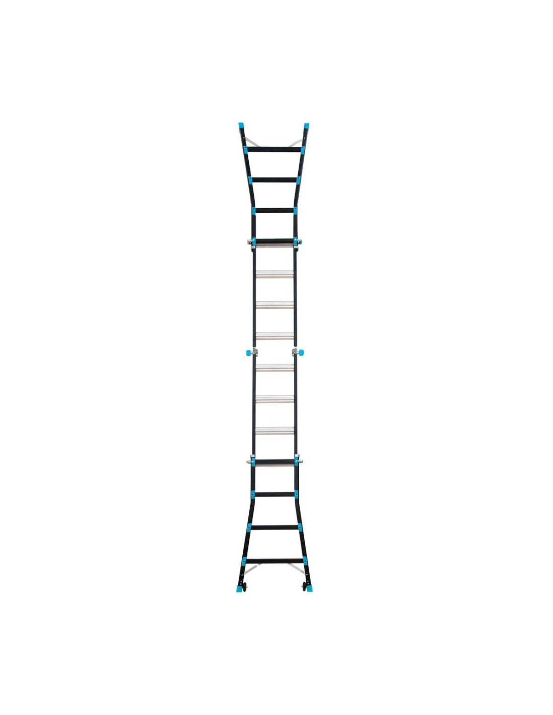 Escalera Multiladder multifunción profesional de 4x4 peldaños, fabricada en aluminio de gran calidad. Utiliza nuestra escalera telescópica en distintas posiciones, según las necesidades de tu trabajo. Gracias a su carácter versátil podrás utilizarla como quieras, sin necesidad de apoyarla en la pared. Perfecta para realizar trabajos de mantenimiento, pintura o reparación en techos.