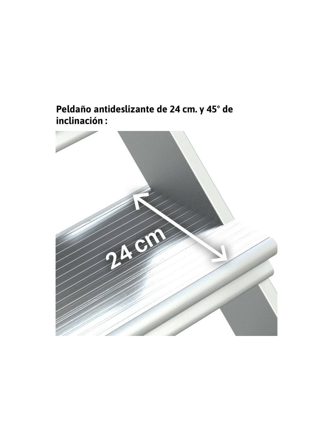 Escalera profesional con plataforma y ruedas de 5 peldaños, disponible de 4 a 17 peldaños según preferencias (consulte nuestro catálogo). Fabricada en aluminio, esta escalera profesional cuenta con una plataforma de trabajo de 80x100 cm y acceso a través de una escalera de 45º de inclinación. Gracias a su material, es ligera y robusta al mismo tiempo, lo que permite su fácil transporte y fuerte estructura. Perfecta para uso profesional e industrial.