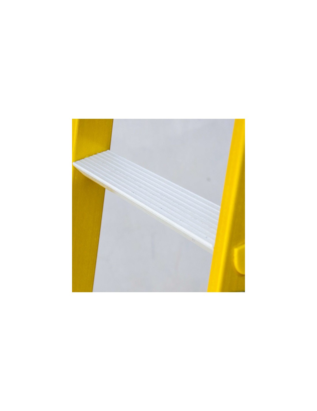Escalera profesional de fibra de tijera doble de 15 peldaños. Este modelo también está disponible de 4 a 16 peldaños, según preferencias, en nuestro catálogo. Esta escalera profesional de fibra de tijera doble cumple con la normativa EN131 y permite una apertura de 72º en cada tramo.