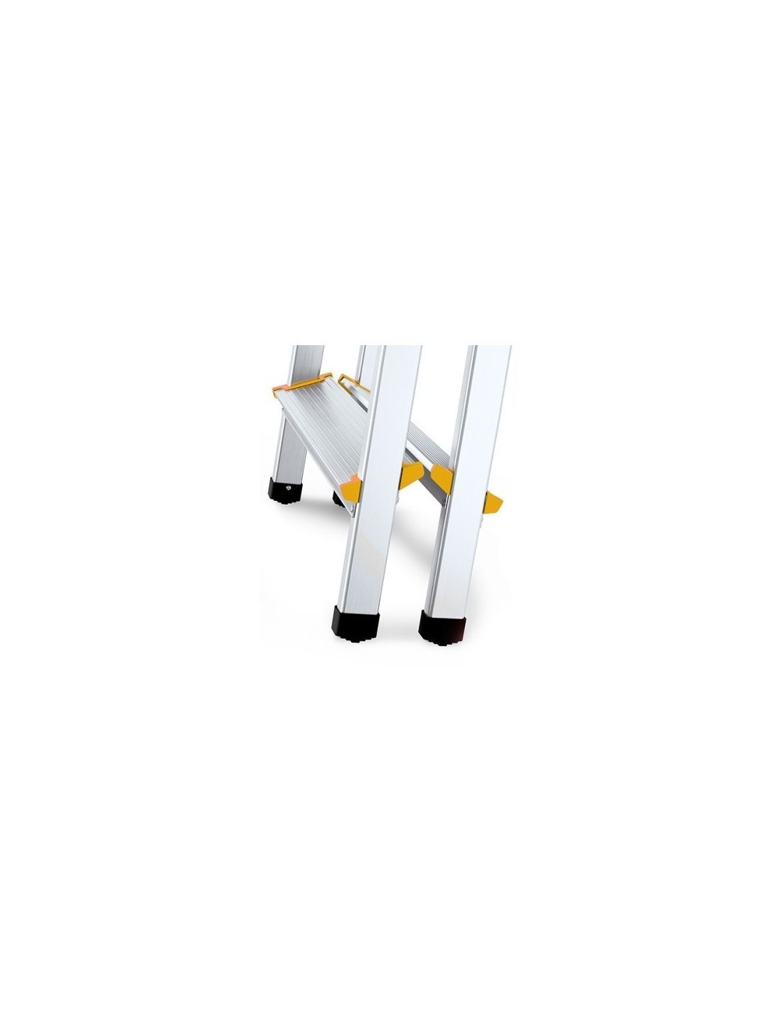 Escalera profesional de tijeras con doble subida y de 2x3 peldaños. Esta escalera profesional está fabricada en aluminio de gran calidad y cuenta con patas plegables. Perfecta para trabajar en alturas más bajas.