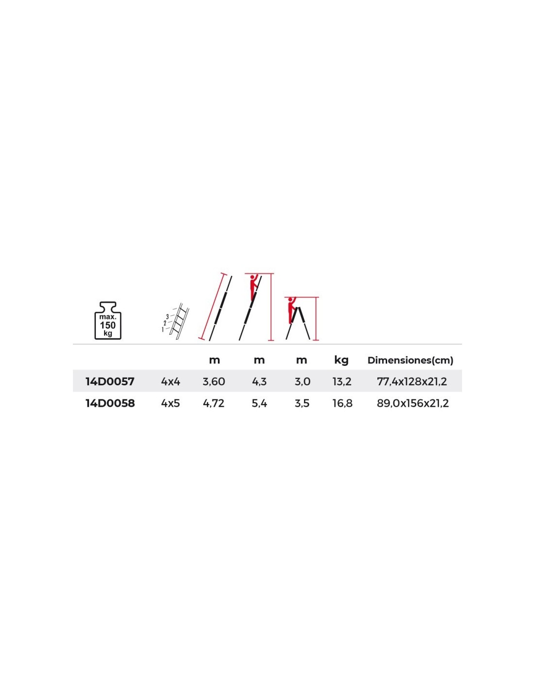 Escalera profesional multiposición y telescópica Aquiles 4x5 peldaños con bisagra B-SAFE, perfecta para profesionales que necesiten una escalera de gran estabilidad para sus trabajos. Cuenta con su bisagra B-SAFE que le permitirá trabajar en dos posiciones, según las necesidades de la tarea.