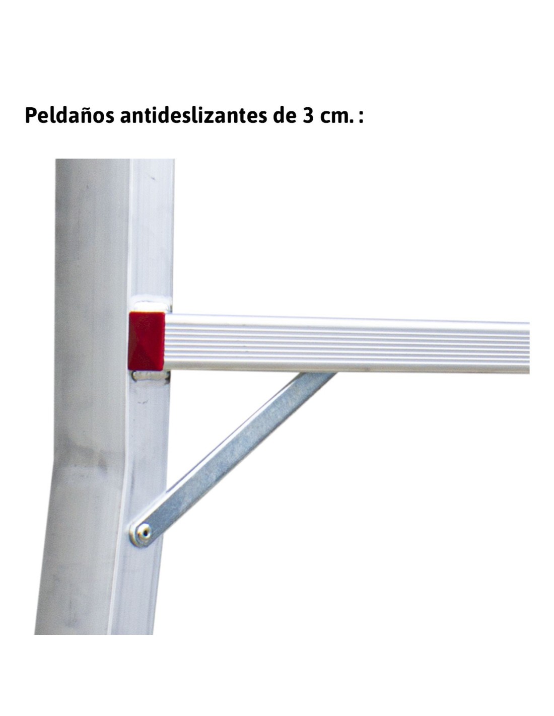 - Peldaños antideslizantes de 3 cm de profundidad