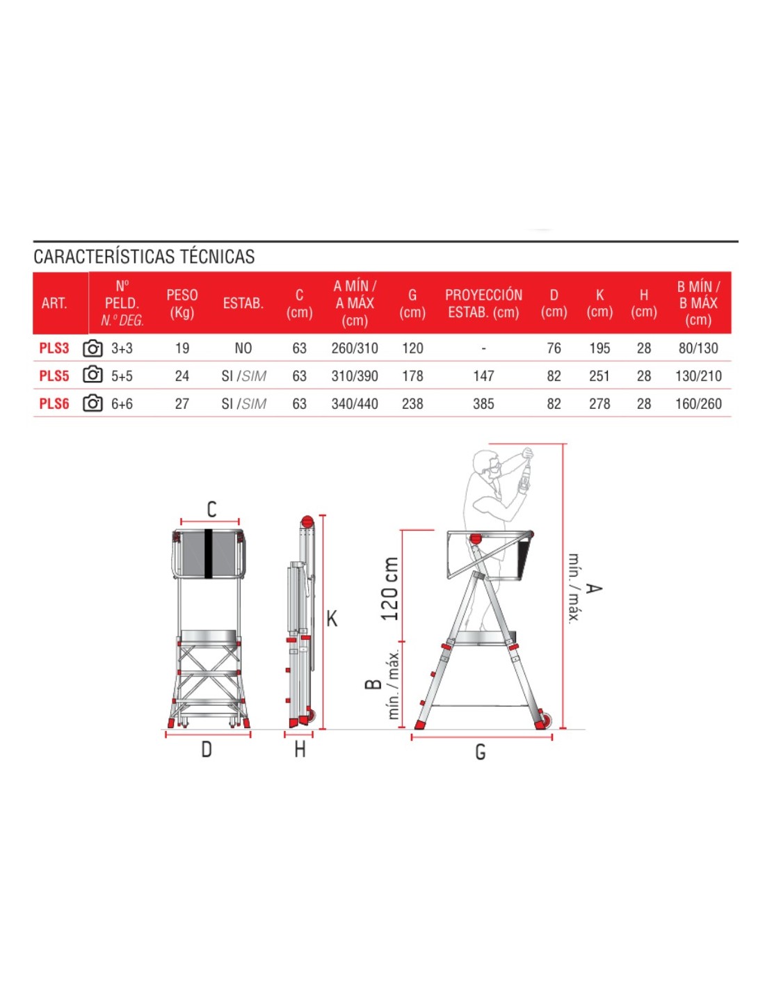 Escalera profesional plegable y regulable PLS6 de 6 peldaños - FARAONE