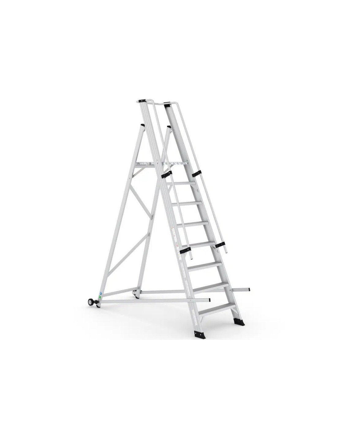 Escalera profesional SITRA con estructura soldada en aluminio de 8 peldaños. Esta escalera profesional ofrece una gran resistencia y estabilidad en todo momento, gracias a su completo equipamiento, sus sistema de plegado y su resistente diseño.