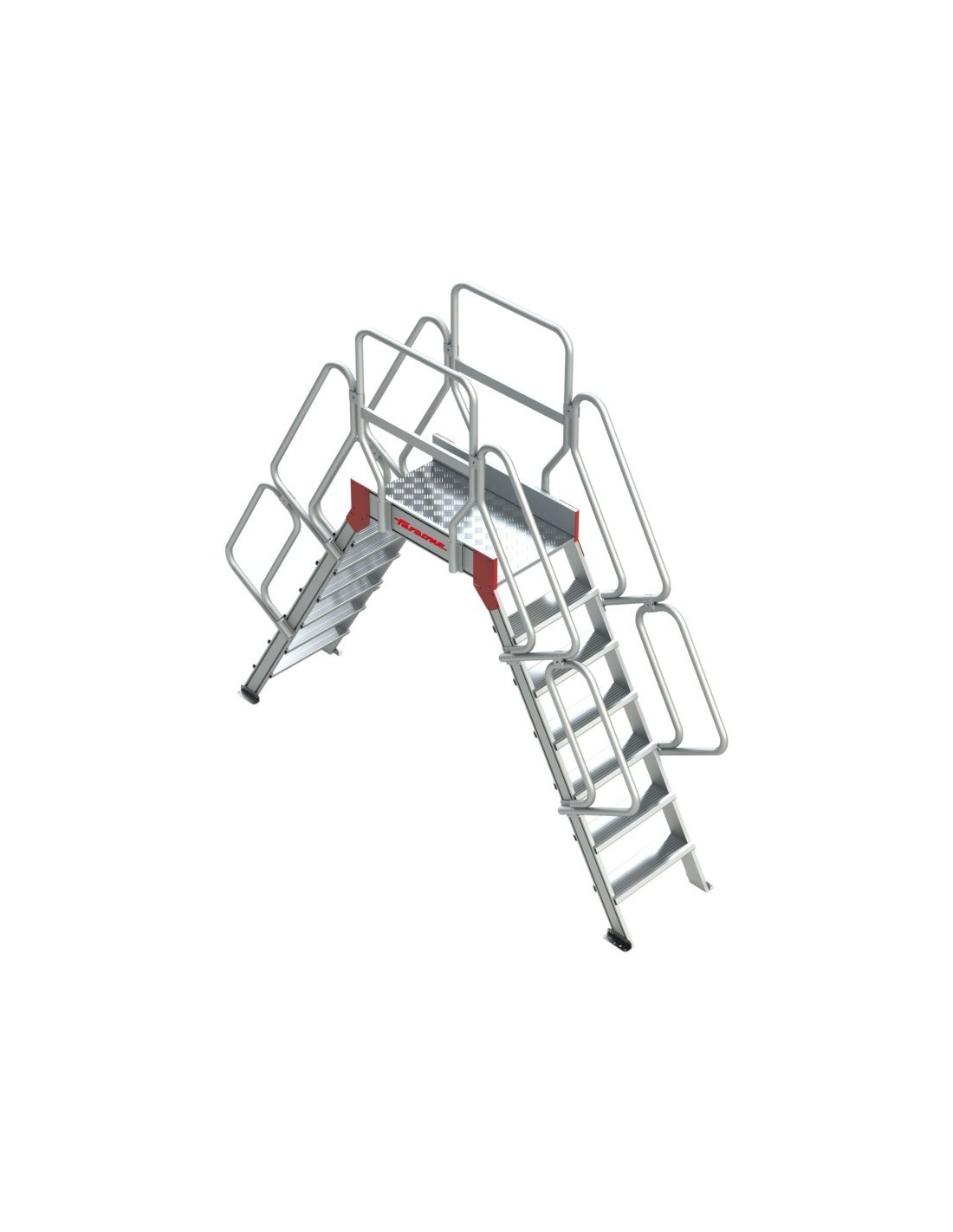 Escalera profesional tipo puente con plataforma y cuatro ruedas de 5 peldaños SP60. Esta escalera tipo puente cuenta con una amplia zona de trabajo antideslizante de 100 cm de largo y 60 cm de ancho, con un acceso mediante escaleras por ambos lados de 60º de inclinación. Gracias a que está fabricada en aluminio, se trata de una escalera profesional ligera y resistente al mismo tiempo. Perfecta para trabajos de industria, como el mantenimiento en zonas próximas a cintas transportadoras.