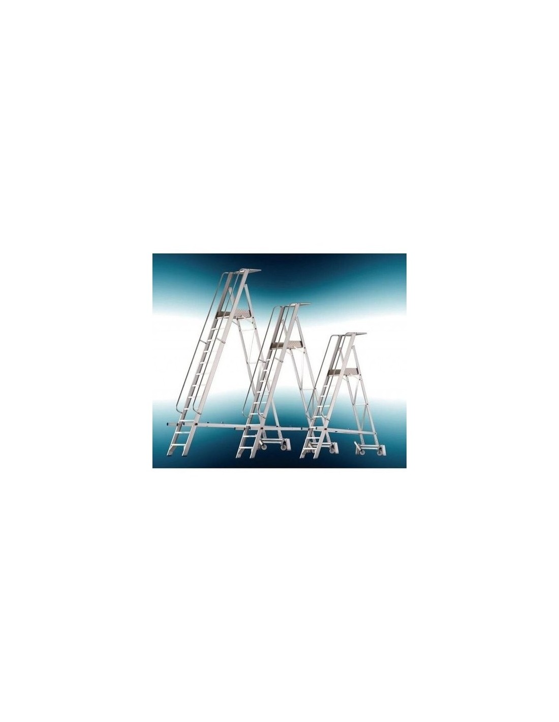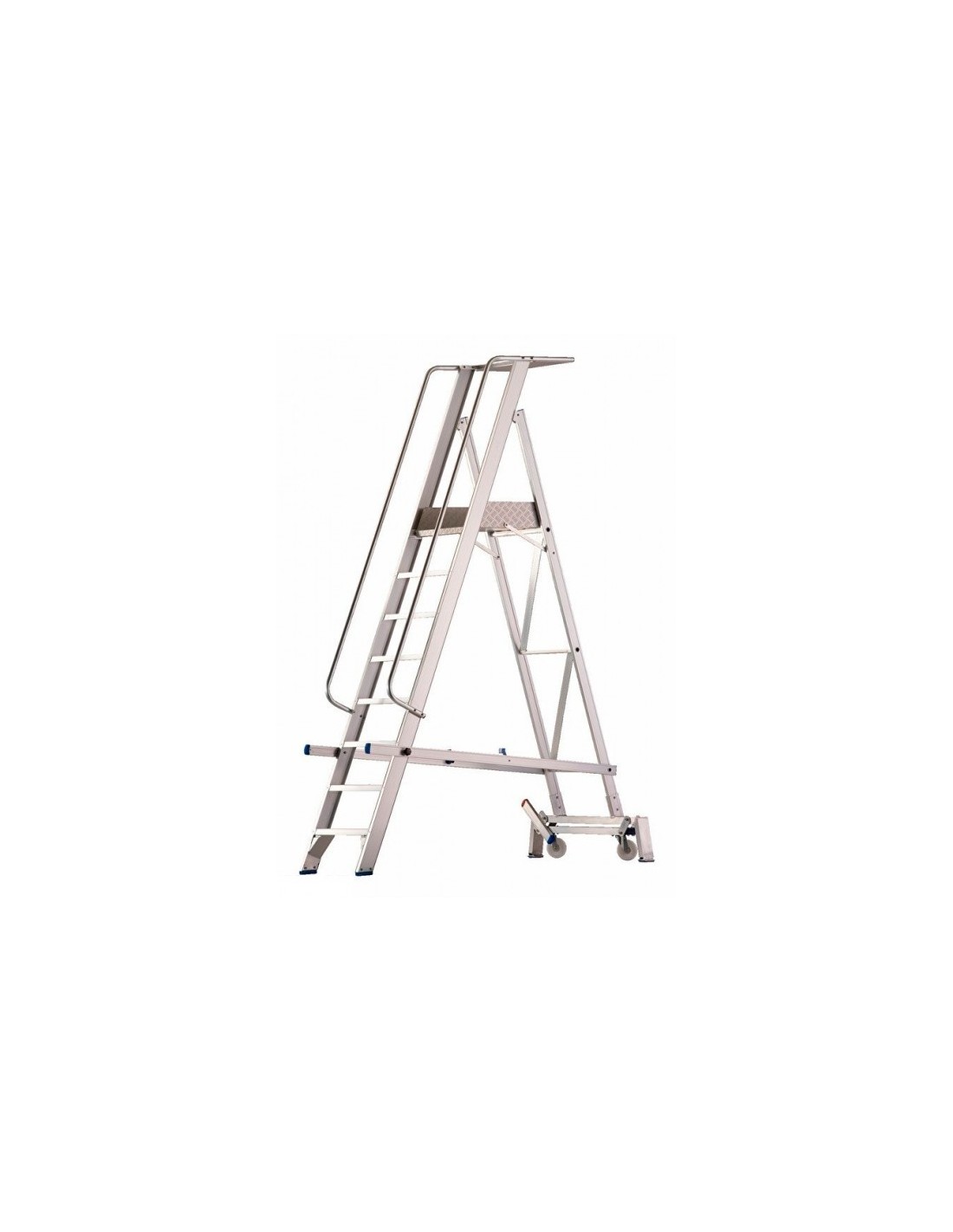 Escalera móvil de almacén de 1x7 peldaños. Esta escalera de almacén es un producto estrella dentro del mercado de escaleras de almacén, ya que se trata de una escalera móvil de gran resistencia, comodidad y seguridad a la hora de usarla. La escalera de almacén está especialmente pensada para uso profesional, industrial, de mantenimiento y en talleres.