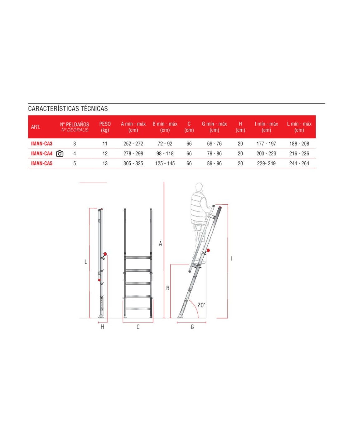 - Fabricada bajo la normativa EN131-1,2,3.