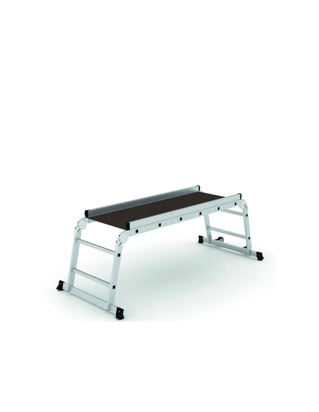 Plataforma profesional fabricada en aluminio sin barandilla y 2 peldaños, le permitirá regular su altura. Esta plataforma profesional es muy fácil de transportar y almacenar gracias a su sistema de plegado. Tiene una inclinación de subida de 76º. Perfecta para trabajar dos operarios simultáneamente.