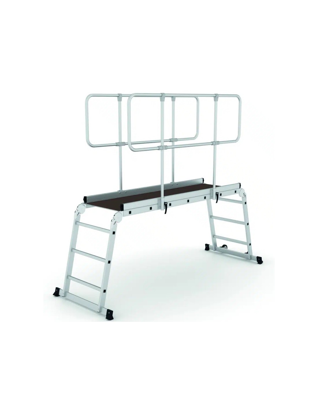 Plataforma profesional fabricada en aluminio con barandilla y 3 peldaños, le permitirá regular su altura. Esta plataforma profesional es muy fácil de transportar y almacenar gracias a su sistema de plegado. Tiene una inclinación de subida de 76º. Perfecta para trabajar dos operarios simultáneamente.