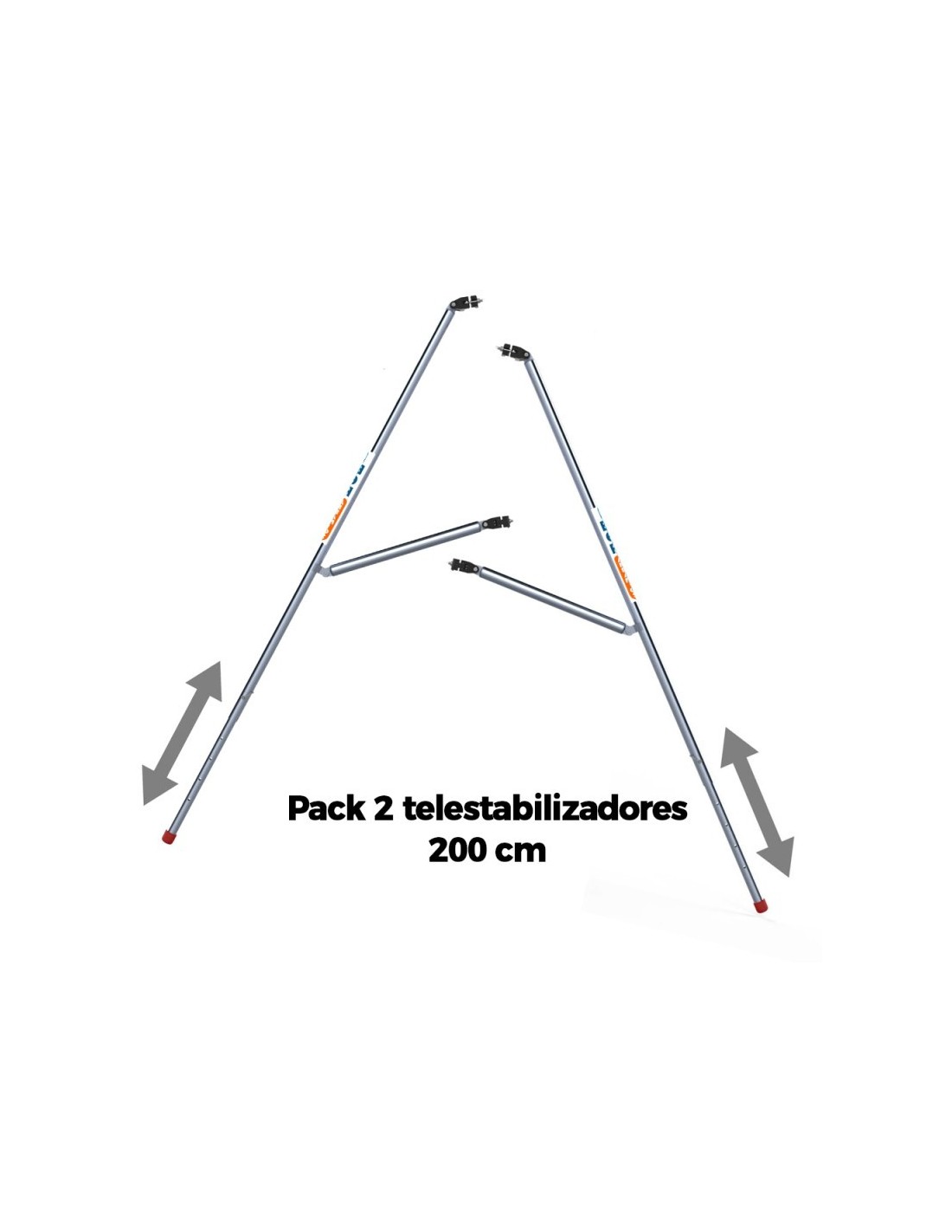 Combo de 2 teleestabilizadores de 2 metros para andaimes móveis tipo torre e andaimes rebatíveis. O teleestabilizador para torres móveis é o complemento perfeito para acrescentar ainda mais segurança e estabilidade ao seu andaime móvel. É compatível com andaimes de outras marcas.