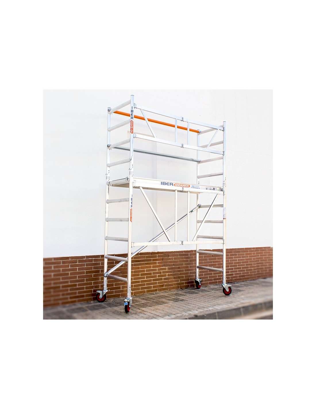 Andaime dobrável em alumínio 75x190 e 3,85 metros de altura de trabalho e barras extra de grande qualidade e versatilidade, pois pode ser utilizado em todo o tipo de obras . Fácil de manusear e de montar, pode até movê-lo sem ter de o desmontar.