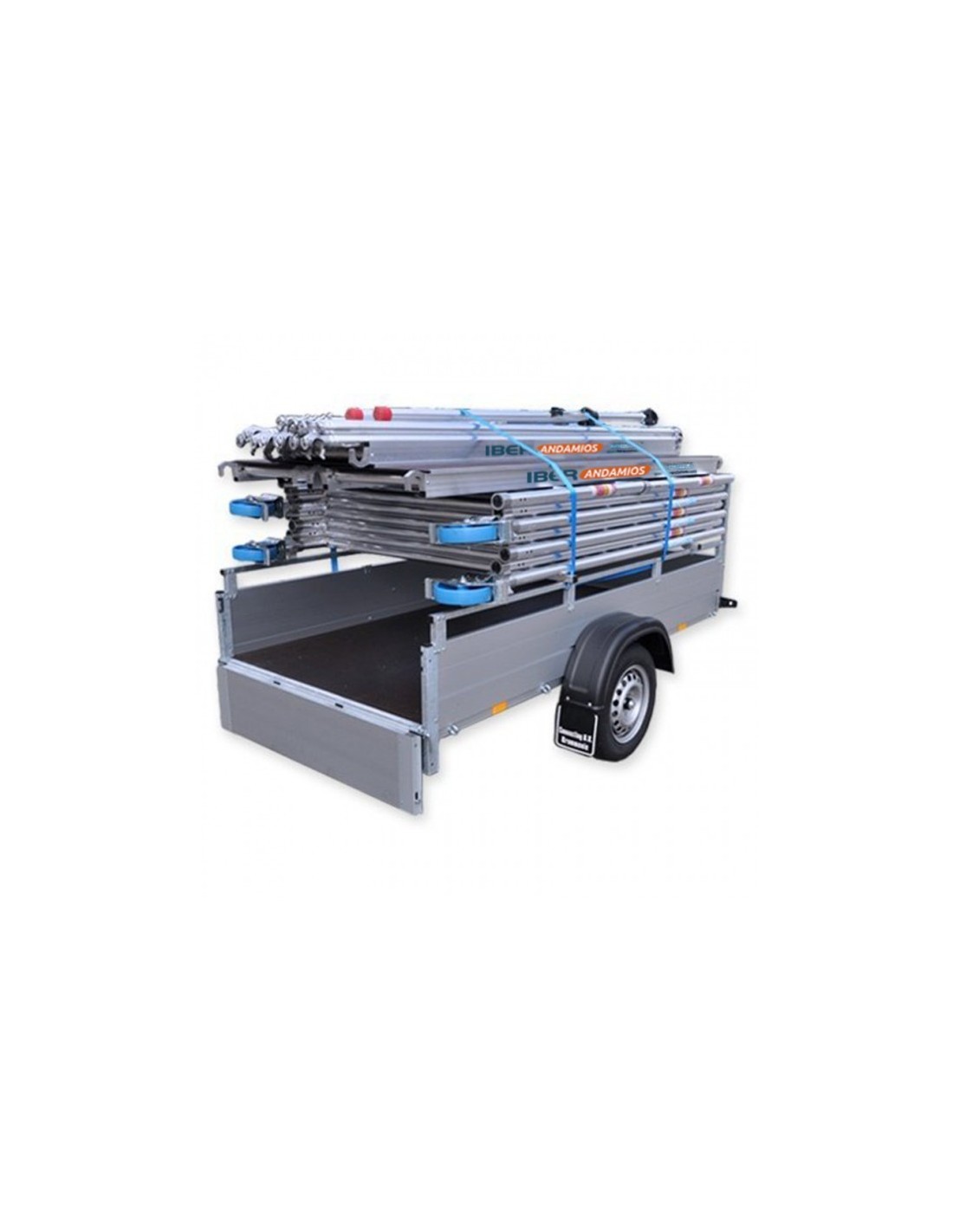 Aluguer de reboques para transporte de andaimes dobráveis e andaimes móveis. Modelo ANSSEMS GT750 com andaime torre 135x250 com altura de trabalho de 8,20 m. Recolha em armazém, entrega apenas disponível para as províncias de Sevilha e Córdoba. Para as restantes províncias consulte a nossa equipa.