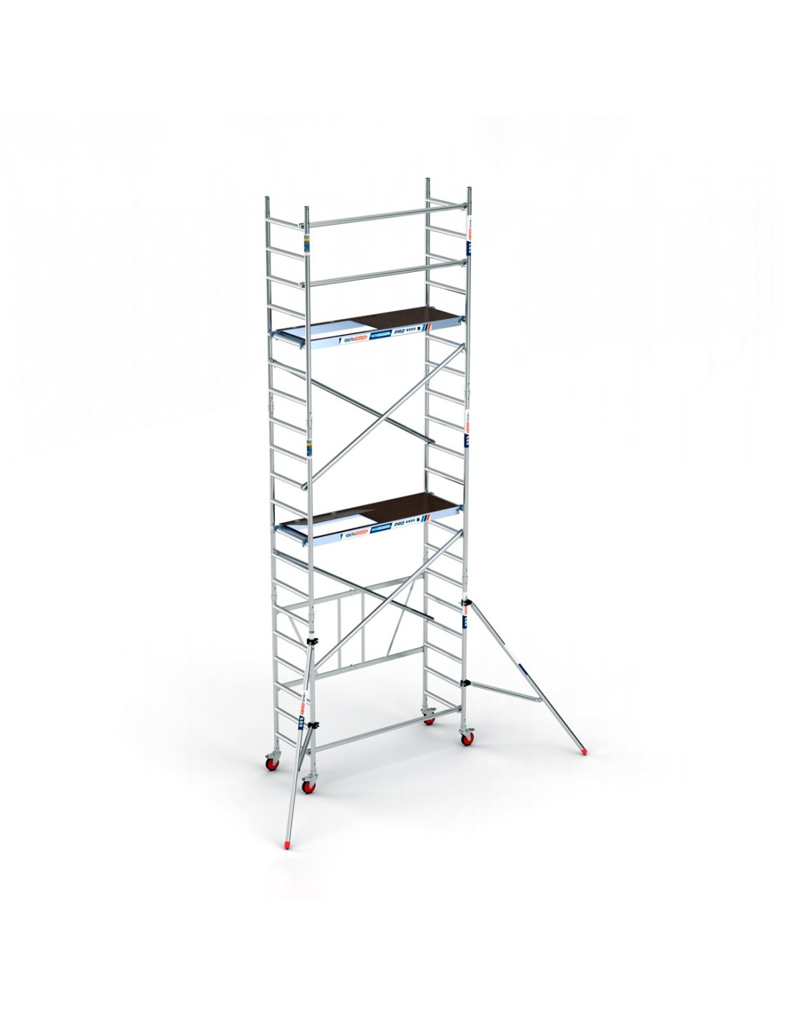 O andaime de alumínio COMBI 75x190 6,50m é uma combinação de andaime dobrável e torre móvel, com 75 cm de largura e. 1,90 m de comprimento, totalmente adaptado às necessidades do profissional alto e fácil de montar. Está disponível em alturas de trabalho de até 7,50 m e em larguras de estrutura de 75 cm, 90 cm e 1,35 m. Este modelo específico inclui estabilizadores.