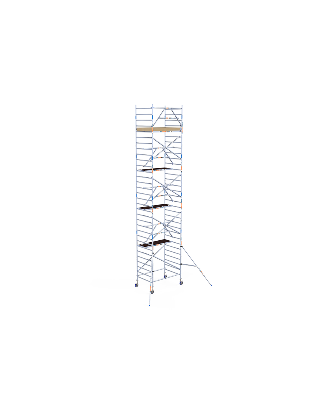 Na compra do andaime tipo torre móvel 135x190x1020 metros altura de trabalho da linha ECO EXTRA da ASC você está adquirindo um dos andaimes móveis de alumínio mais seguros do mercado graças ao seu corrimão, que você pode montar antes mesmo de acessar a plataforma de trabalho, evitando assim o risco de acidentes. Proteja o seu trabalho em altura graças a esta torre de andaime móvel 100% homologada e em conformidade com as normas europeias. Este modelo tem uma altura de trabalho de 10,20 metros, mas você pode estendê-la até 14,20 metros graças à sua natureza expansível.