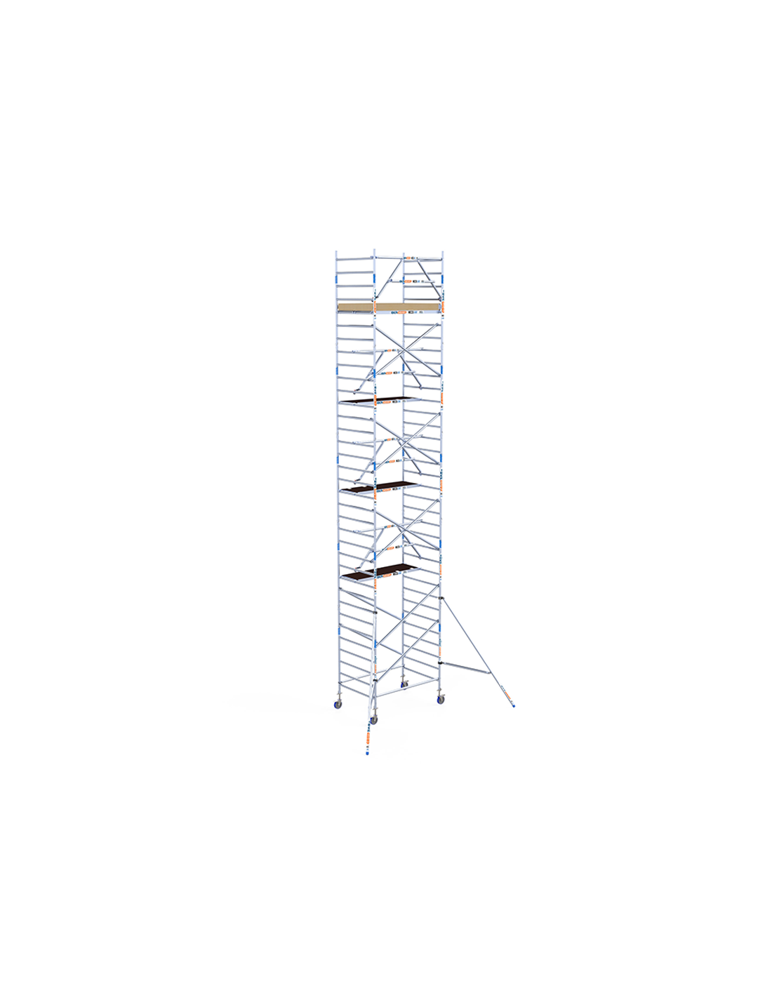 Na compra do andaime tipo torre móvel 135x190x1120 metros altura de trabalho da linha ECO EXTRA da ASC você está adquirindo um dos andaimes móveis de alumínio mais seguros do mercado graças ao seu corrimão, que você pode montar antes mesmo de acessar a plataforma de trabalho, evitando assim o risco de acidentes. Proteja o seu trabalho em altura graças a esta torre de andaime móvel 100% homologada e em conformidade com as normas europeias. Este modelo tem uma altura de trabalho de 11,20 metros, mas você pode estendê-la até 14,20 metros graças à sua natureza expansível.