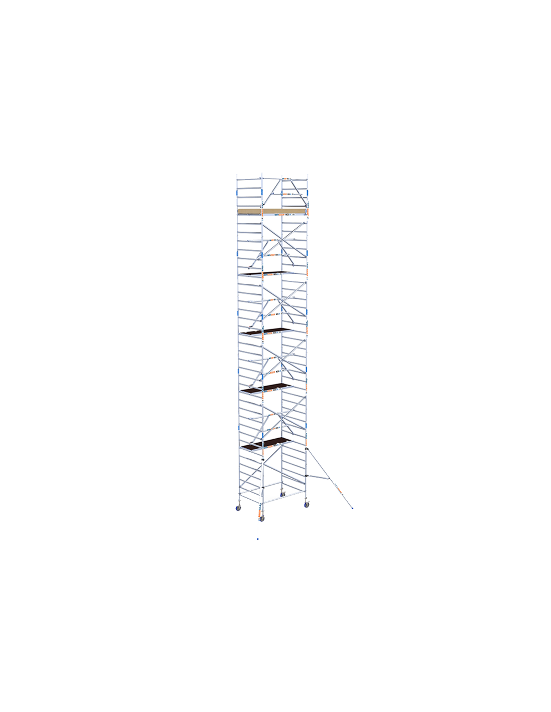 Na compra do andaime tipo torre móvel 135x190x1220 metros altura de trabalho da linha ECO EXTRA da Alumexx você está adquirindo um dos andaimes móveis de alumínio mais seguros do mercado graças ao seu corrimão, que você pode montar antes mesmo de acessar a plataforma de trabalho, evitando assim o risco de acidentes. Proteja o seu trabalho em altura graças a esta torre de andaime móvel 100% homologada e em conformidade com as normas europeias. Este modelo tem uma altura de trabalho de 12,20 metros, mas você pode estendê-la até 14,20 metros graças à sua natureza expansível.