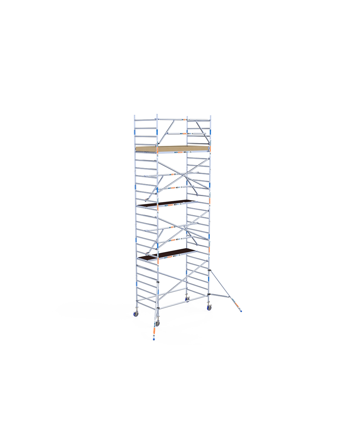 Na compra do andaime tipo torre móvel 135x250x820 metros altura de trabalho da linha ECO EXTRA da ASC você está adquirindo um dos andaimes móveis de alumínio mais seguros do mercado graças ao seu corrimão, que você pode montar antes mesmo de acessar a plataforma de trabalho, evitando assim o risco de acidentes. Proteja o seu trabalho em altura graças a esta torre de andaime móvel 100% homologada e em conformidade com as normas europeias. Este modelo tem uma altura de trabalho de 8,20 metros, mas você pode estendê-la até 14,20 metros graças à sua natureza expansível.
