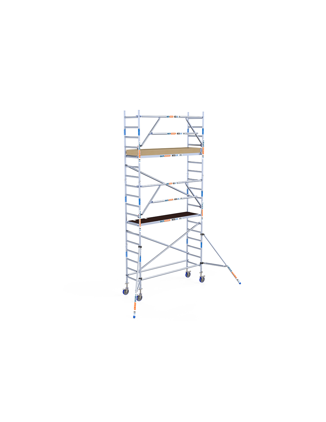 Na compra do andaime tipo torre móvel 75x190x620 metros altura de trabalho da linha ECO EXTRA da ASC você está adquirindo um dos andaimes móveis de alumínio mais seguros do mercado graças ao seu corrimão, que você pode montar antes mesmo de acessar a plataforma de trabalho, evitando assim o risco de acidentes. Proteja o seu trabalho em altura graças a esta torre de andaime móvel 100% homologada e em conformidade com as normas europeias. Este modelo tem uma altura de trabalho de 6,20 metros, mas você pode estendê-la até 10,20 metros graças à sua natureza expansível.