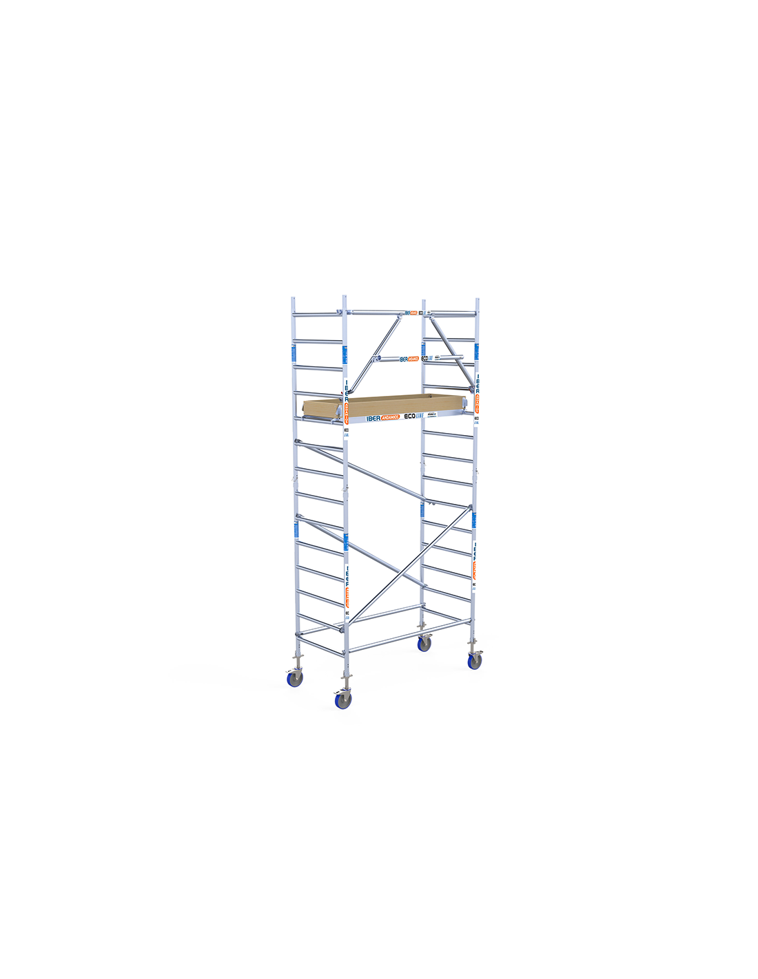 Na compra do andaime tipo torre móvel 90x190x520 metros altura de trabalho da linha ECO EXTRA da ASC você está adquirindo um dos andaimes móveis de alumínio mais seguros do mercado graças ao seu corrimão, que você pode montar antes mesmo de acessar a plataforma de trabalho, evitando assim o risco de acidentes. Proteja o seu trabalho em altura graças a esta torre de andaime móvel 100% homologada e em conformidade com as normas europeias. Este modelo tem uma altura de trabalho de 5,20 metros, mas você pode estendê-la até 10,20 metros graças à sua natureza expansível.