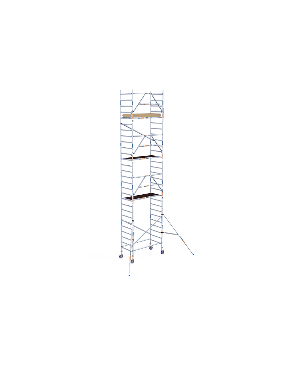 Na compra do andaime tipo torre móvel 90x190x920 metros altura de trabalho da linha ECO EXTRA da ASC você está adquirindo um dos andaimes móveis de alumínio mais seguros do mercado graças ao seu corrimão, que você pode montar antes mesmo de acessar a plataforma de trabalho, evitando assim o risco de acidentes. Proteja o seu trabalho em altura graças a esta torre de andaime móvel 100% homologada e em conformidade com as normas europeias. Este modelo tem uma altura de trabalho de 9,20 metros, mas você pode estendê-la até 10,20 metros graças à sua natureza expansível.