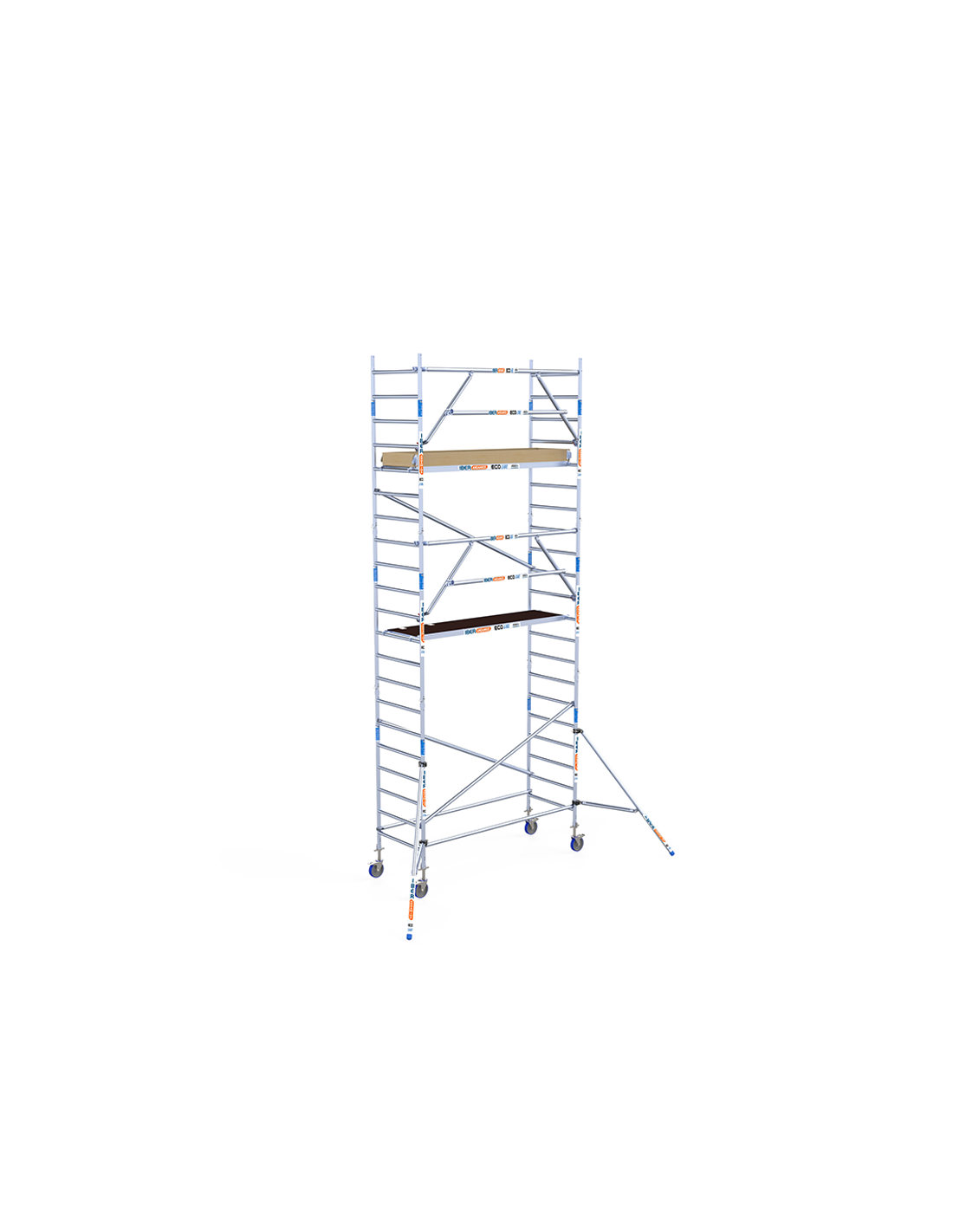 Na compra do andaime tipo torre móvel 90x250x720 metros altura de trabalho da linha ECO EXTRA da ASC você está adquirindo um dos andaimes móveis de alumínio mais seguros do mercado graças ao seu corrimão, que você pode montar antes mesmo de acessar a plataforma de trabalho, evitando assim o risco de acidentes. Proteja o seu trabalho em altura graças a esta torre de andaime móvel 100% homologada e em conformidade com as normas europeias. Este modelo tem uma altura de trabalho de 7,20 metros, mas você pode estendê-la até 10,20 metros graças à sua natureza expansível.