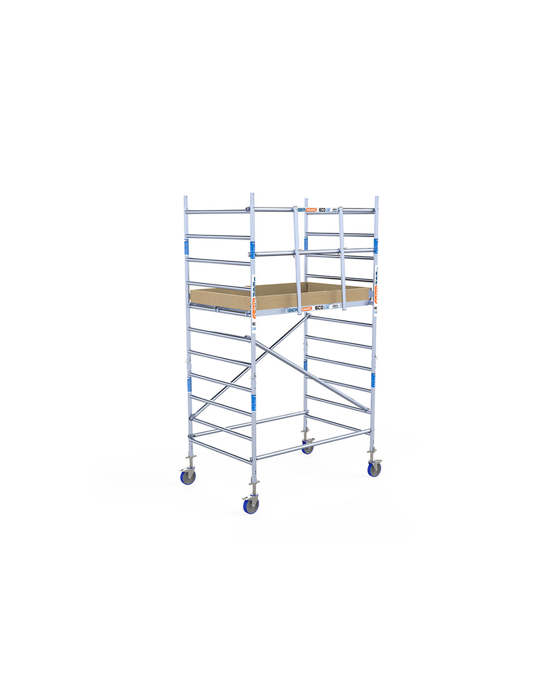 Na compra do andaime tipo torre móvel 135x190x420 metros altura de trabalho da linha ECO LINE da ASC você está adquirindo um dos andaimes móveis de alumínio mais seguros do mercado graças ao seu corrimão, que você pode montar antes mesmo de acessar a plataforma de trabalho, evitando assim o risco de acidentes. Proteja o seu trabalho em altura graças a esta torre de andaime móvel 100% homologada e em conformidade com as normas europeias. Este modelo tem uma altura de trabalho de 4,20 metros, mas você pode estendê-la até 10,20 metros graças à sua natureza expansível.