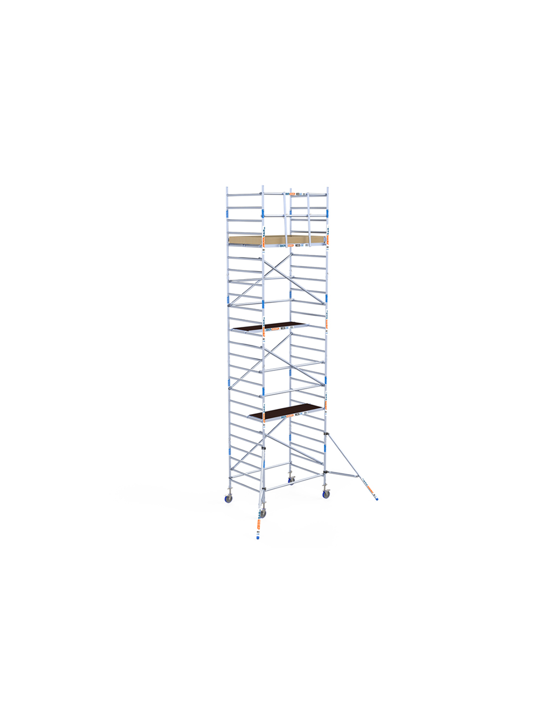 Na compra do andaime tipo torre móvel 135x190x820 metros altura de trabalho da linha ECO LINE da ASC você está adquirindo um dos andaimes móveis de alumínio mais seguros do mercado graças ao seu corrimão, que você pode montar antes mesmo de acessar a plataforma de trabalho, evitando assim o risco de acidentes. Proteja o seu trabalho em altura graças a esta torre de andaime móvel 100% homologada e em conformidade com as normas europeias. Este modelo tem uma altura de trabalho de 8,20 metros, mas você pode estendê-la até 10,20 metros graças à sua natureza expansível.