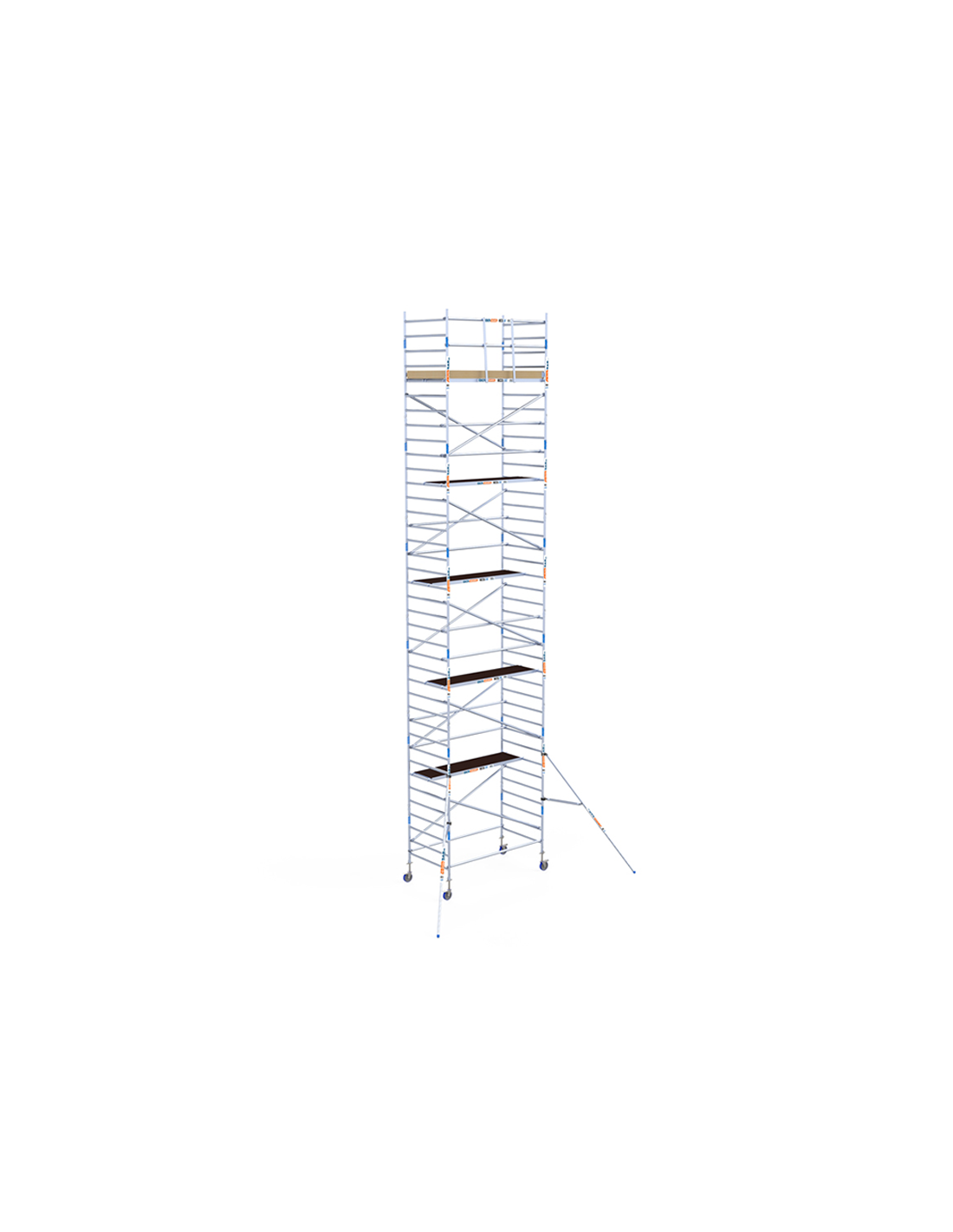 Na compra do andaime tipo torre móvel 135x250x1220 metros altura de trabalho da linha ECO LINE da ASC você está adquirindo um dos andaimes móveis de alumínio mais seguros do mercado graças ao seu corrimão, que você pode montar antes mesmo de acessar a plataforma de trabalho, evitando assim o risco de acidentes. Proteja o seu trabalho em altura graças a esta torre de andaime móvel 100% homologada e em conformidade com as normas europeias. Este modelo tem uma altura de trabalho de 12,20 metros, mas você pode estendê-la até 14,20 metros graças à sua natureza expansível.