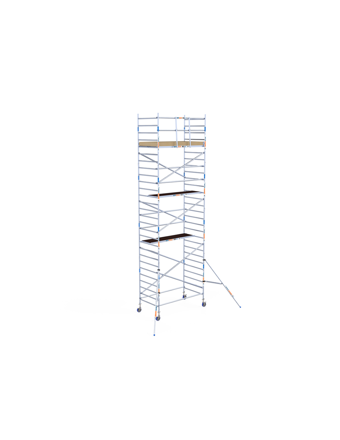Na compra do andaime tipo torre móvel 135x250x920 metros altura de trabalho da linha ECO LINE da ASC você está adquirindo um dos andaimes móveis de alumínio mais seguros do mercado graças ao seu corrimão, que você pode montar antes mesmo de acessar a plataforma de trabalho, evitando assim o risco de acidentes. Proteja o seu trabalho em altura graças a esta torre de andaime móvel 100% homologada e em conformidade com as normas europeias. Este modelo tem uma altura de trabalho de 9,20 metros, mas você pode estendê-la até 14,20 metros graças à sua natureza expansível.