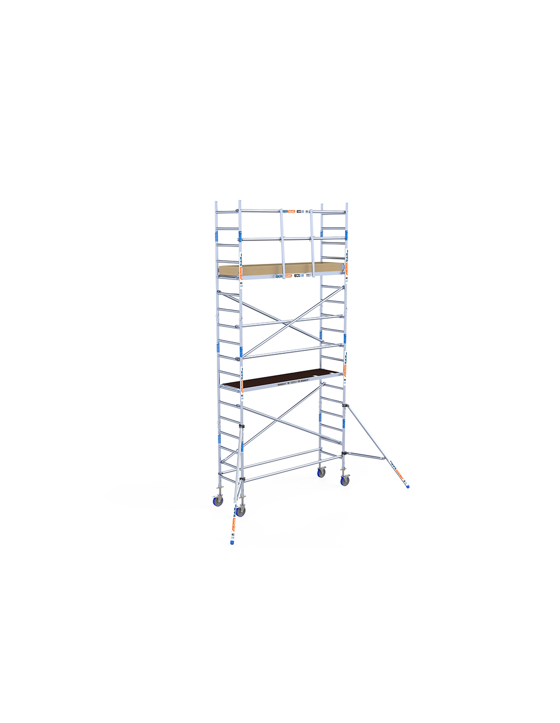 Na compra do andaime tipo torre móvel 75x190x620 metros altura de trabalho da linha ECO LINE da ASC você está adquirindo um dos andaimes móveis de alumínio mais seguros do mercado graças ao seu corrimão, que você pode montar antes mesmo de acessar a plataforma de trabalho, evitando assim o risco de acidentes. Proteja o seu trabalho em altura graças a esta torre de andaime móvel 100% homologada e em conformidade com as normas europeias. Este modelo tem uma altura de trabalho de 6,20 metros, mas você pode estendê-la até 10,20 metros graças à sua natureza expansível.