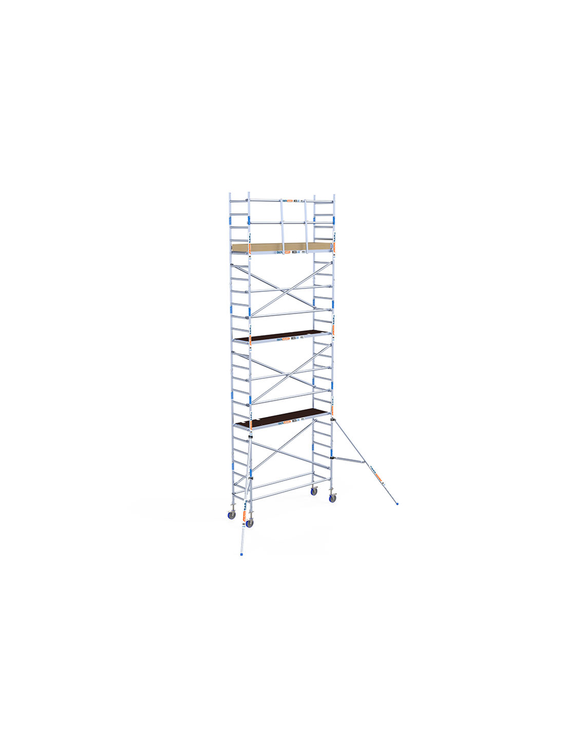 Na compra do andaime tipo torre móvel 75x190x820 metros altura de trabalho da linha ECO LINE da ASC você está adquirindo um dos andaimes móveis de alumínio mais seguros do mercado graças ao seu corrimão, que você pode montar antes mesmo de acessar a plataforma de trabalho, evitando assim o risco de acidentes. Proteja o seu trabalho em altura graças a esta torre de andaime móvel 100% homologada e em conformidade com as normas europeias. Este modelo tem uma altura de trabalho de 8,20 metros, mas você pode estendê-la até 10,20 metros graças à sua natureza expansível.