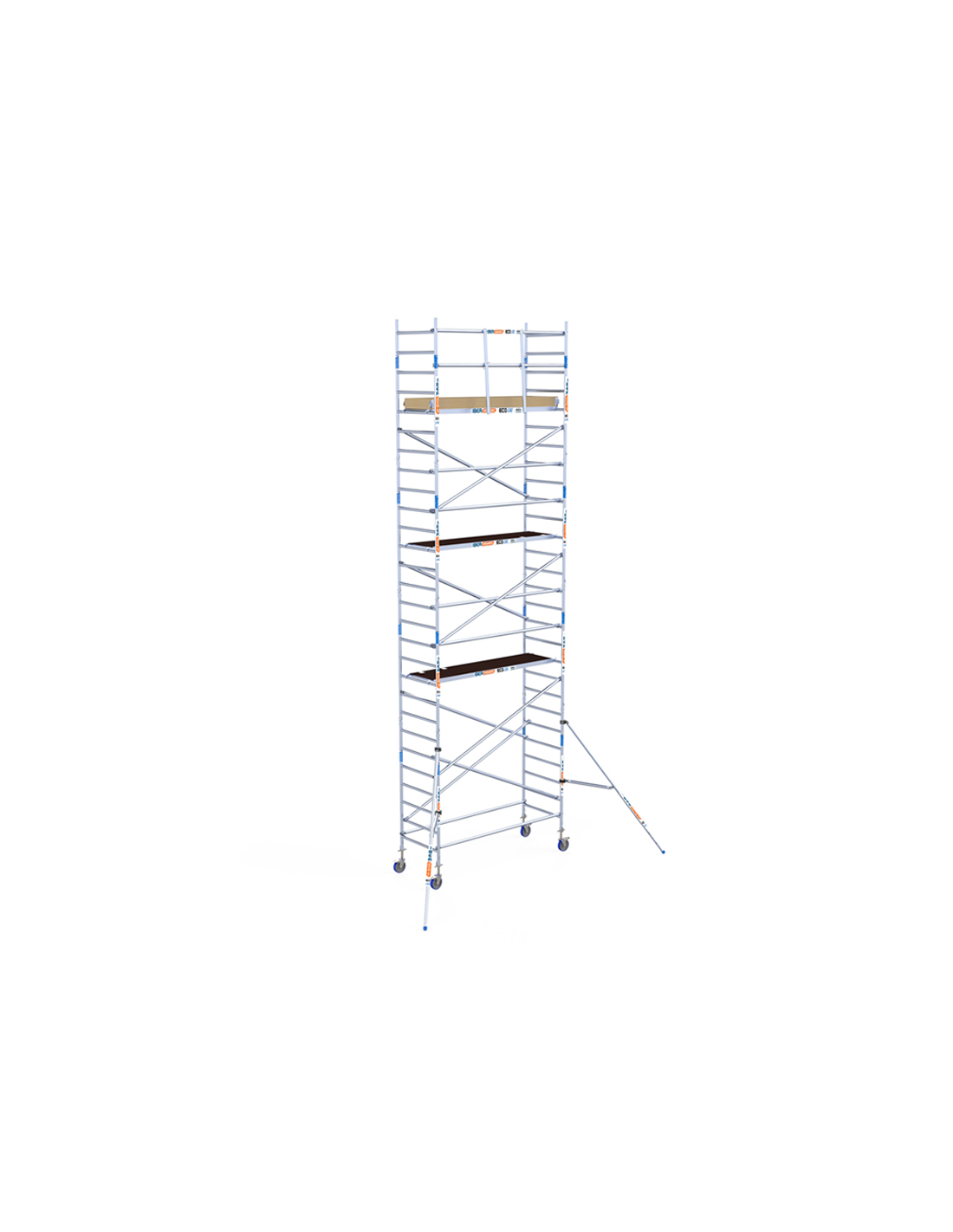 Na compra do andaime tipo torre móvel 90x250x920 metros altura de trabalho da linha ECO LINE da ASC você está adquirindo um dos andaimes móveis de alumínio mais seguros do mercado graças ao seu corrimão, que você pode montar antes mesmo de acessar a plataforma de trabalho, evitando assim o risco de acidentes. Proteja o seu trabalho em altura graças a esta torre de andaime móvel 100% homologada e em conformidade com as normas europeias. Este modelo tem uma altura de trabalho de 9,20 metros, mas você pode estendê-la até 10,20 metros graças à sua natureza expansível.