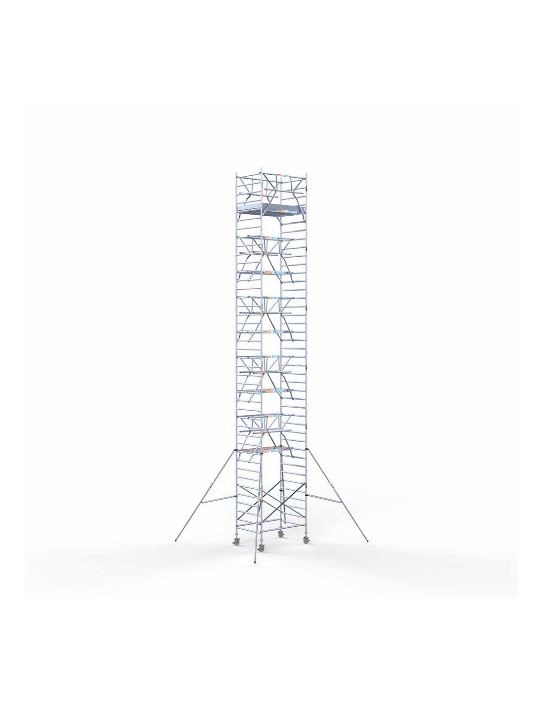 Na compra do andaime móvel tipo torre 135x190x1320 metros de altura de trabalho da linha PRO DOBLE SAFE está a adquirir um dos andaimes móveis em alumínio mais seguros do mercado graças ao seu guarda-corpos SAFE INSTALL, que pode montar ainda antes de aceder à plataforma de trabalho, evitando assim o risco de acidentes. Proteja o seu trabalho em altura graças a esta torre de andaime móvel 100% homologada e em conformidade com as normas europeias.